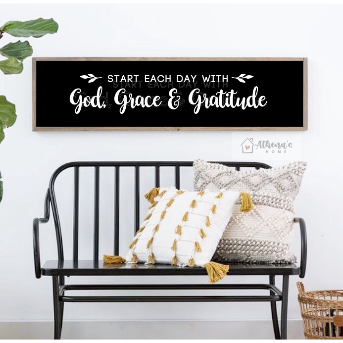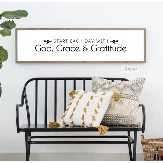 START EACH DAY WITH GOD GRACE GRATITUDE RUSTIC WOOD SIGN