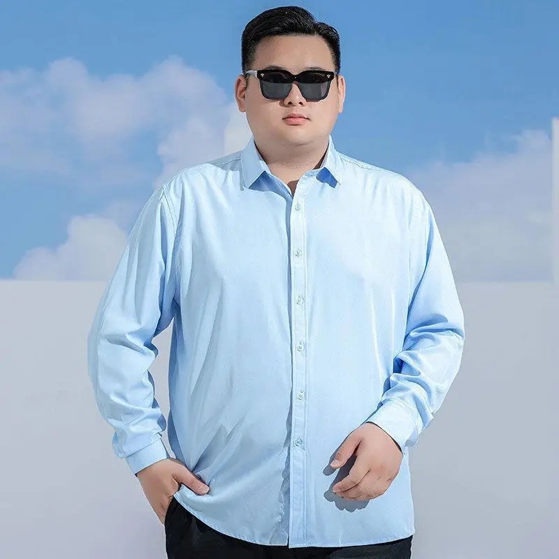Plus Size S-8XL, Men's Solid Color Formal Long Sleeve Shirt, Business Office Button Up Shirt