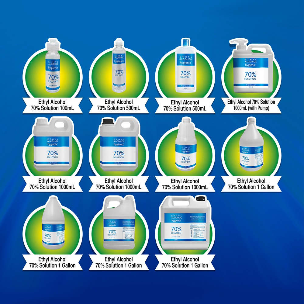 Hygienix 70% Ethyl Alcohol Antibacterial Solution 1 Gallon - Set of 2