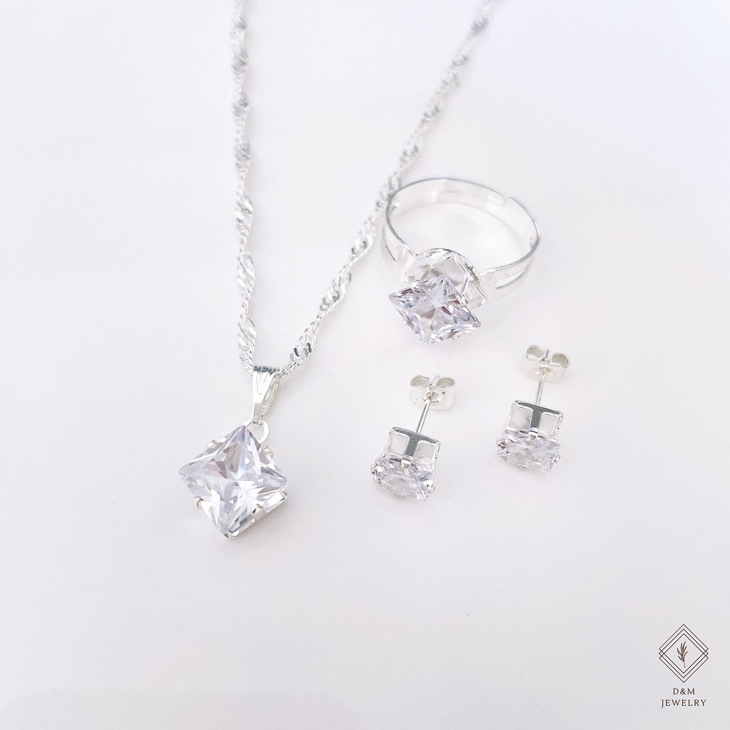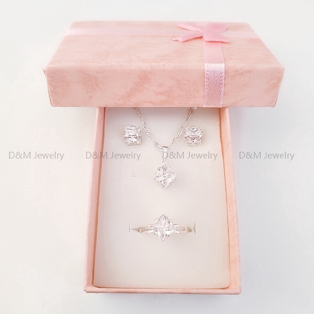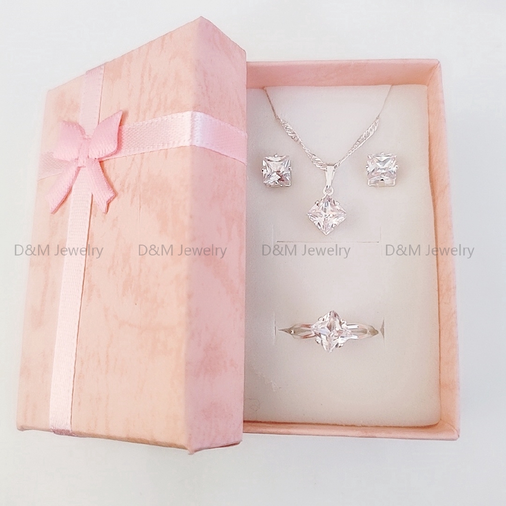 925 silver set 3in1 earrings necklace ring size adjustable for women with free box