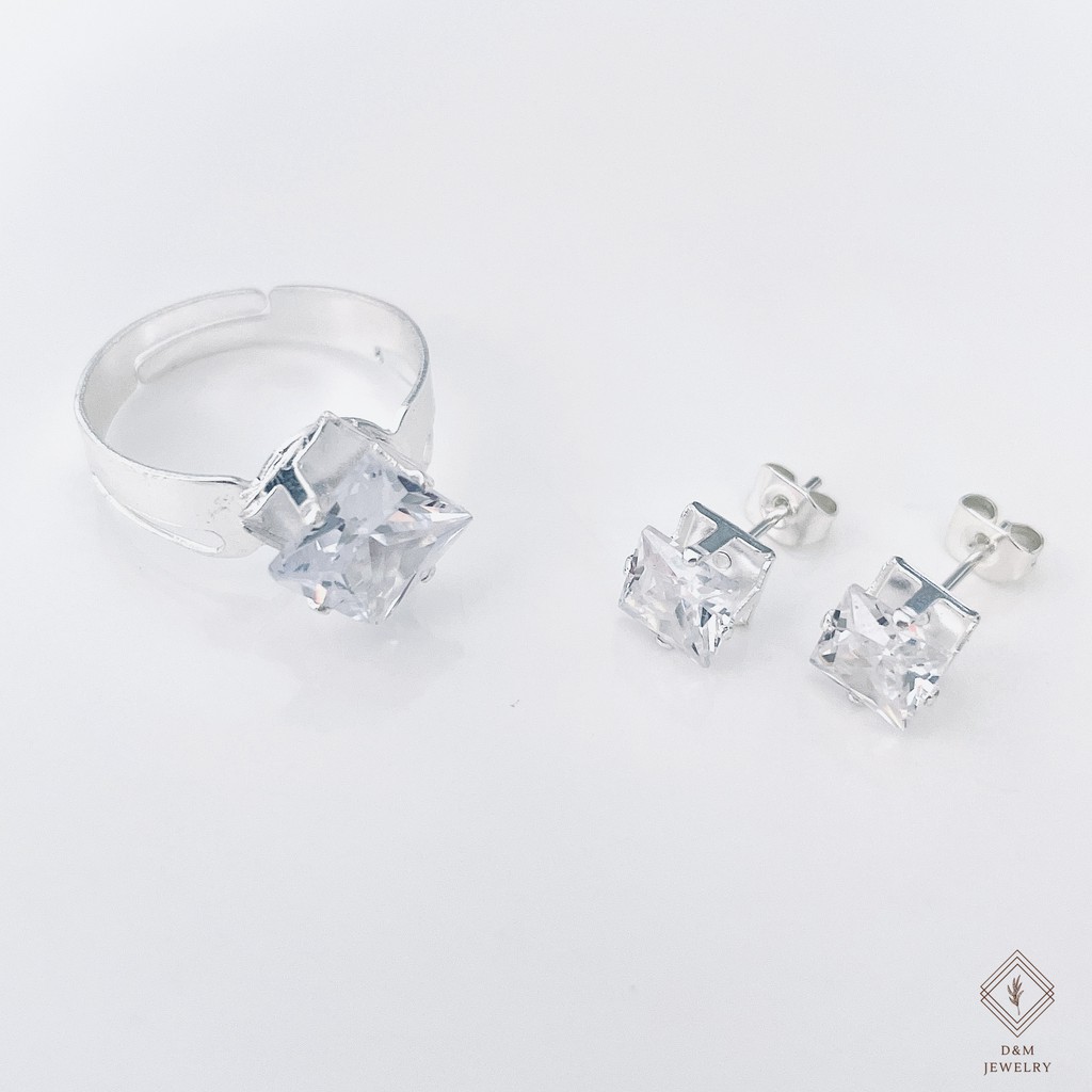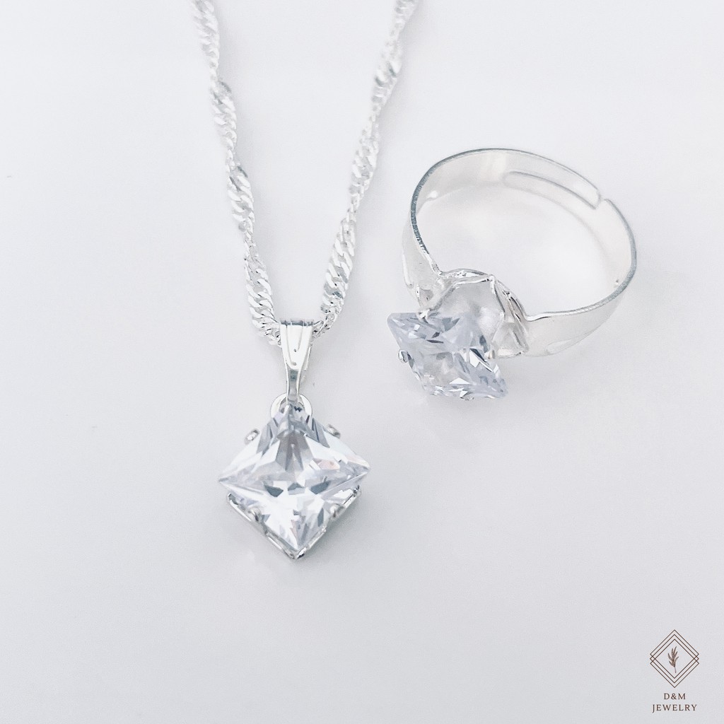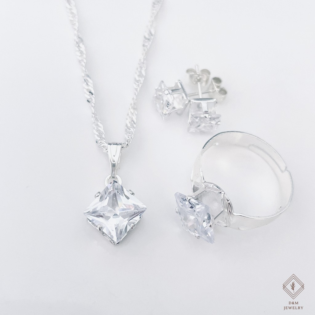 925 silver set 3in1 earrings necklace ring size adjustable for women with free box
