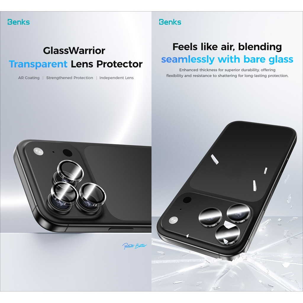 [Benks Official] Benks Transparent / Metal Frame GlassWarrior Lens Protector for IPhone 17 Air Pro Max Corning Glass All-Inclusive Clear Camera Protective Glass