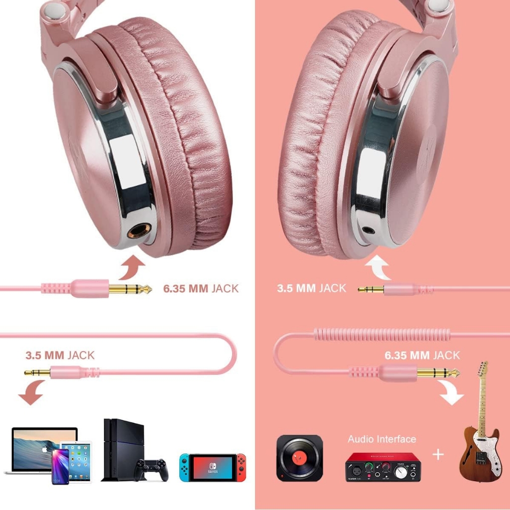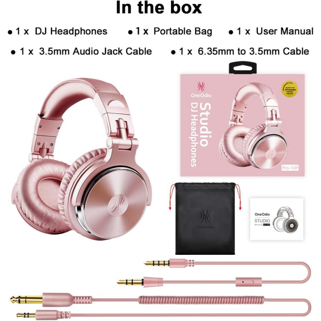 OneOdio / OneAudio Original Pro 10 DJ Studio Headphones Wired Shareable Adapter-Free - Pink