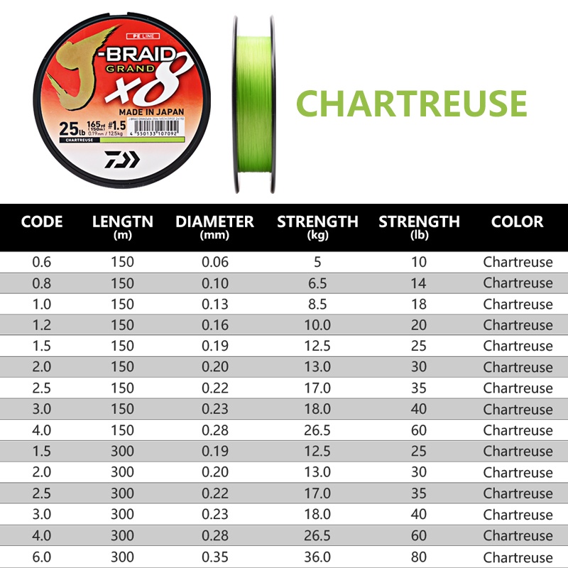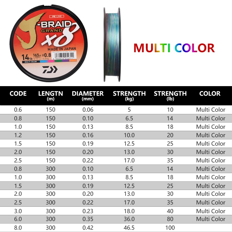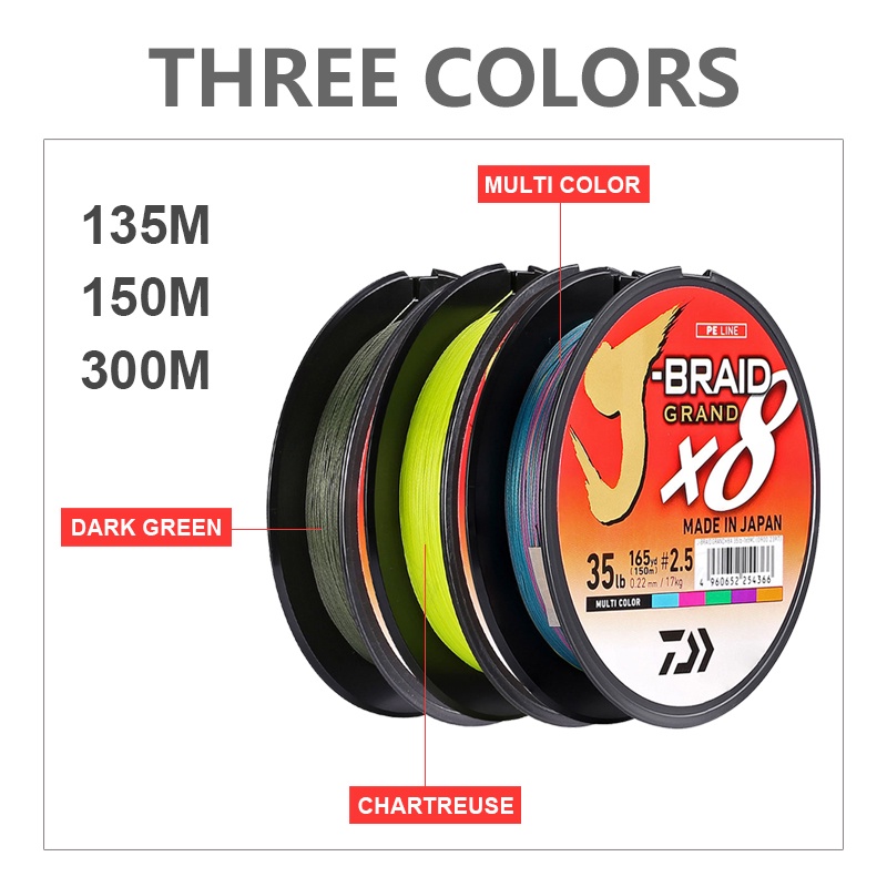 Japan DAIWA J-BRAID GRAND Fishing Line 135m/150m 8 Strands Braided PE Line sea Fishing Tackle Braided Fishing Line