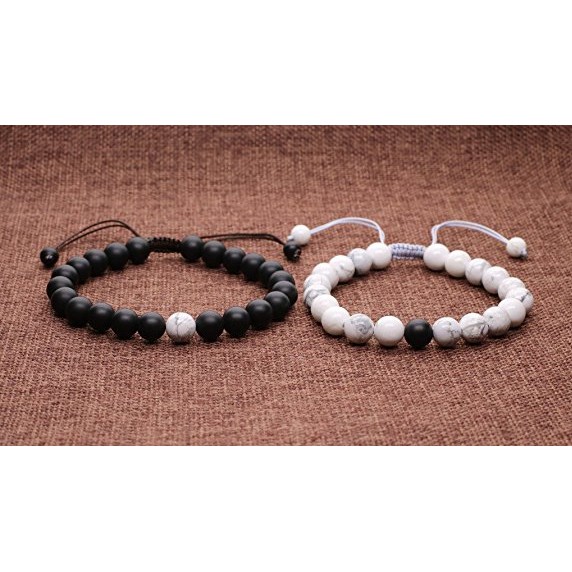 2Pcs Adjustable Long Distance Relationship Stones Couple Bracelets