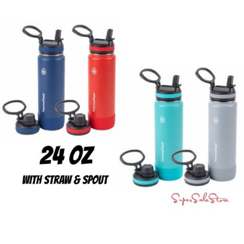 ThermoFlask Straw and Spout 24oz Stainless Steel Insulated Bottle