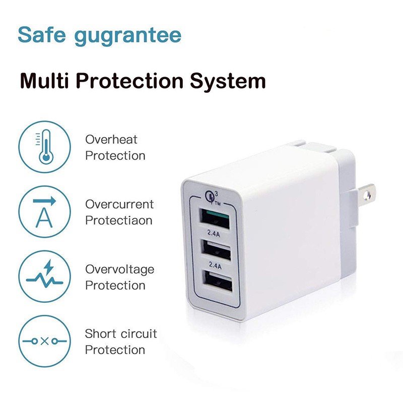 Universal Plug 3.0 Fast Charger Mobile Phone Adapter with 3 USB Port for Traveling