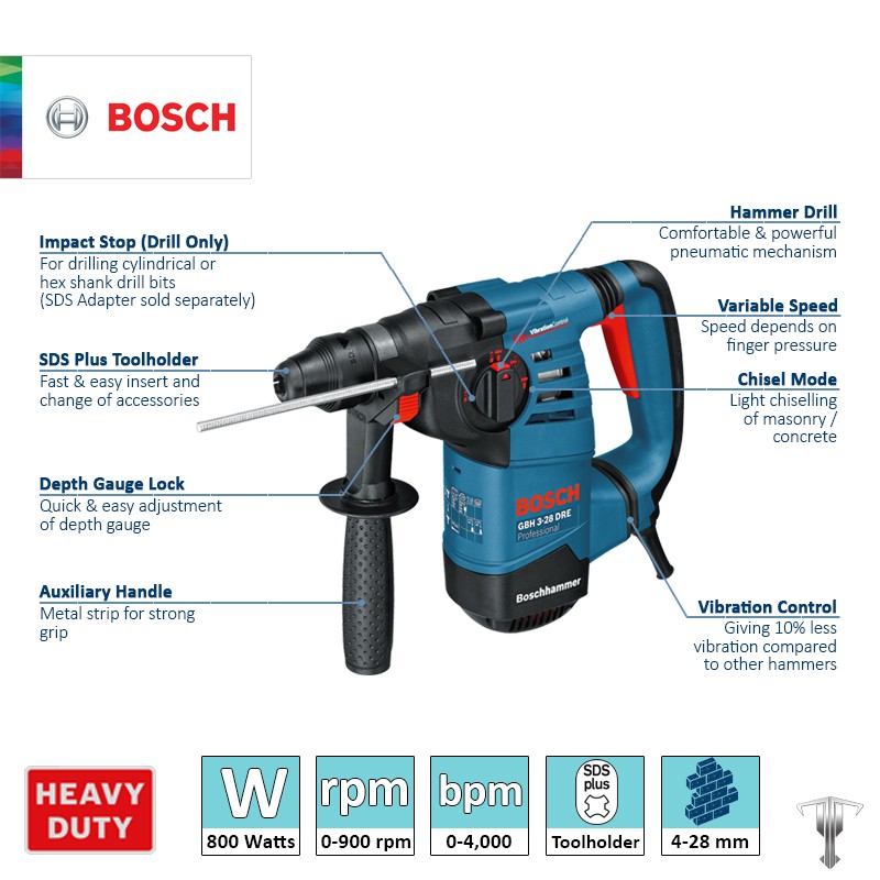 Bosch GBH 3-28 DRE Professional 800 W SDS Plus Combi Rotary Hammer Power Tool