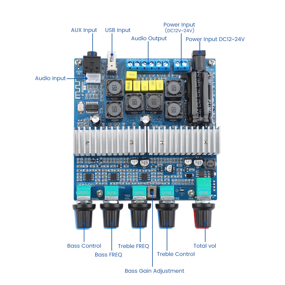 AIYIMA Upgraded TPA3116 Subwoofer Amplifier Audio Board 2.1 HiFi Amplificador USB DAC Bluetooth 5.0 Power Amplifiers 2x50W+100W