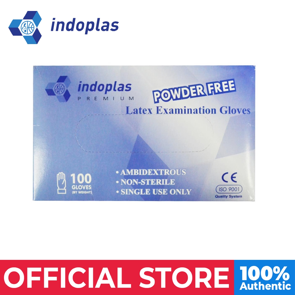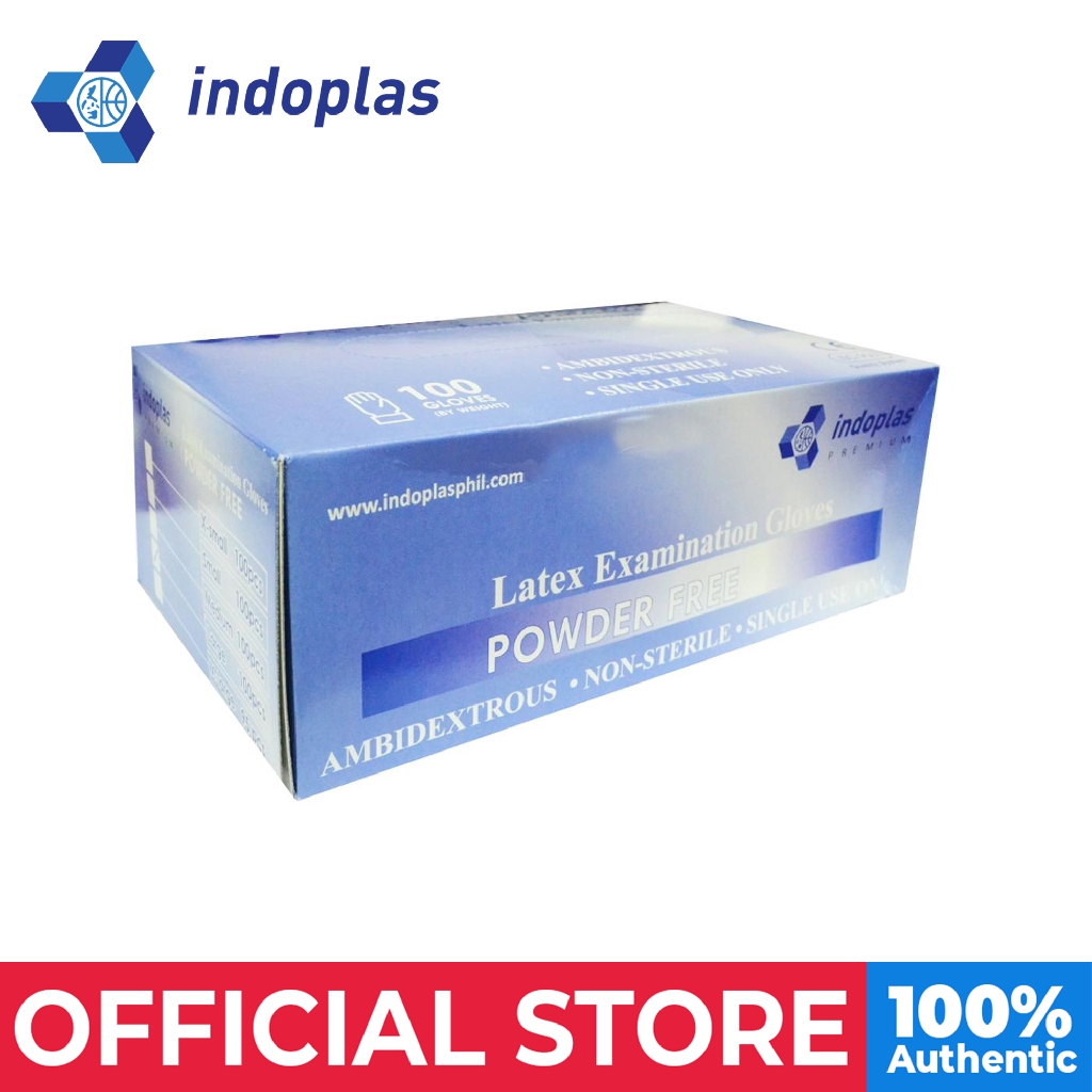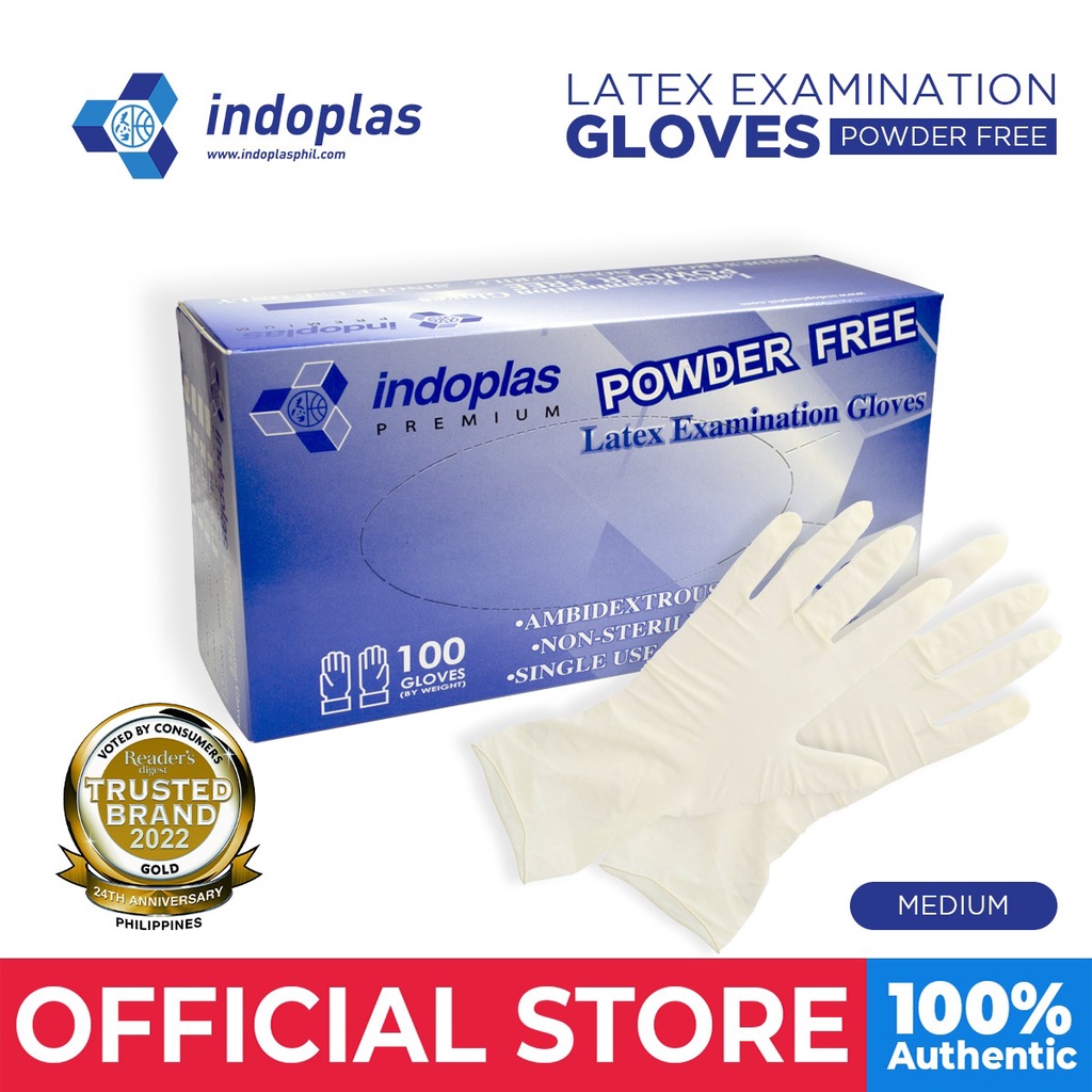 Indoplas Powder Free Examination Latex Gloves Box of 100 Medium