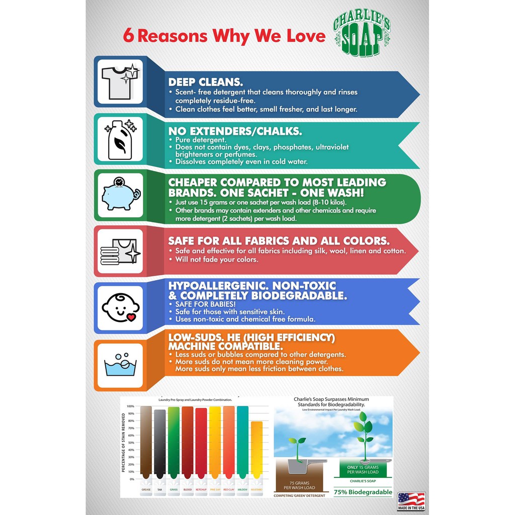 Charlie's Soap Laundry Detergent Powder Sachet (15g Per Sachet)