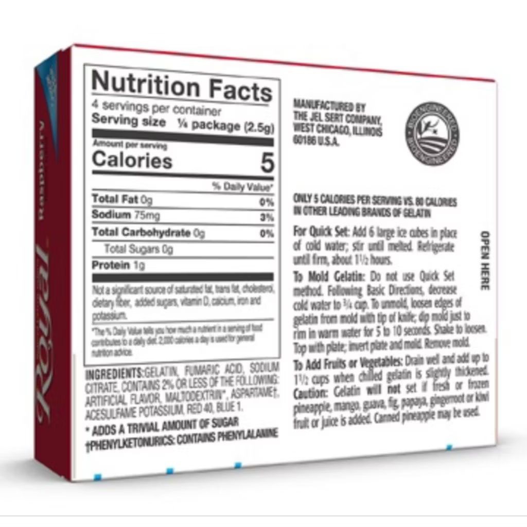 ROYAL SUGAR-FREE RASPBERRY REDUCED CALORIE GELATIN KETO FRIENDLY, 9G.