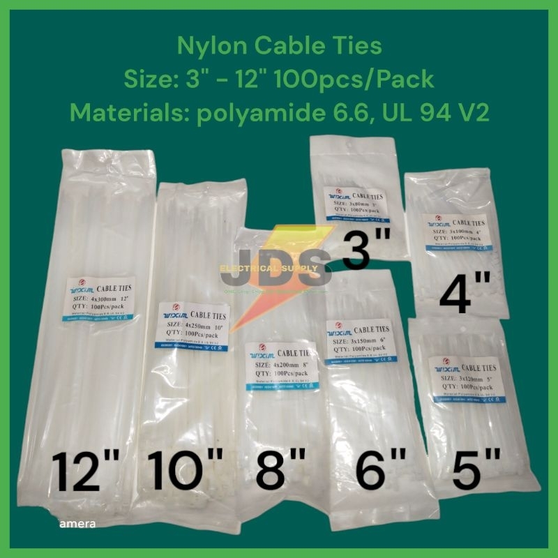 100pcs Nylon Cable Tie 3",4",5",6",8",10",12" - JDS Electrical Supply