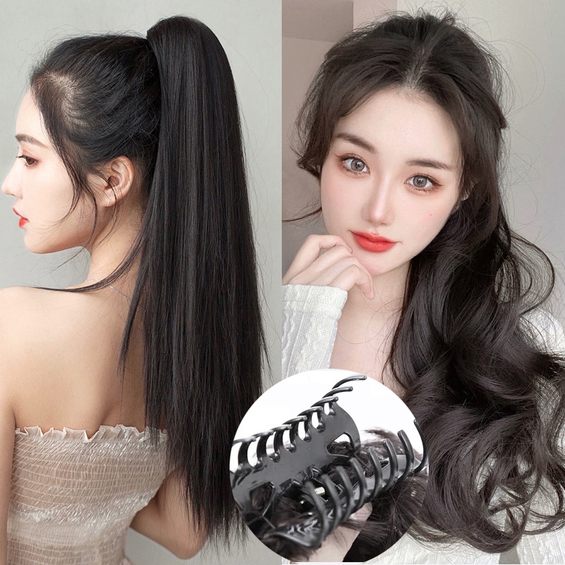 18/22 inch Long Curly Straight Claw Ponytail Extensions Soft Drawstring Ponytail Hairpiece Wig