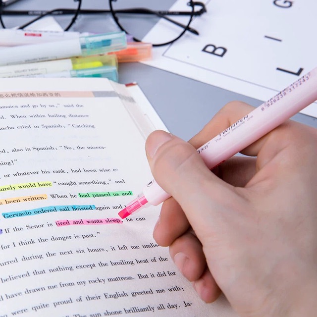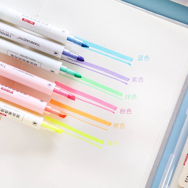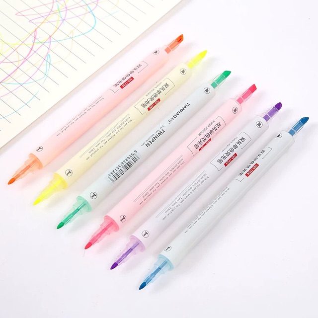 HOKKA Double Headed Highlighter Pen/Twinpen Dual Tip Highlighters (6PCS) Flat & Round Headed