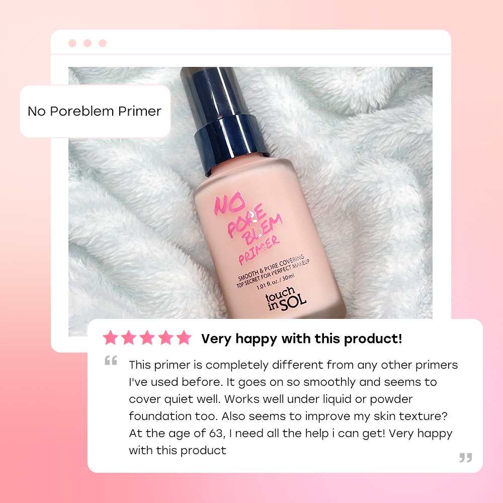 [Touch in Sol] No Poreblem Primer touch in sol / touchinsol / hydrating / flawless skin / smooth skin / oil control / pore control / pores / brightening / dewy skin