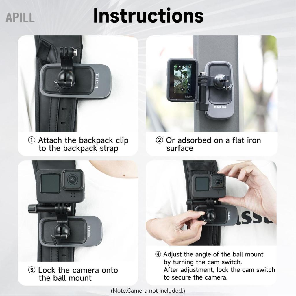 apill TELESIN Backpack Strap Clamp Magnetic Swivel Clip for Cam 360°Rotating Adjustable Mount Quick Compatible with GoPro11/10/9/8