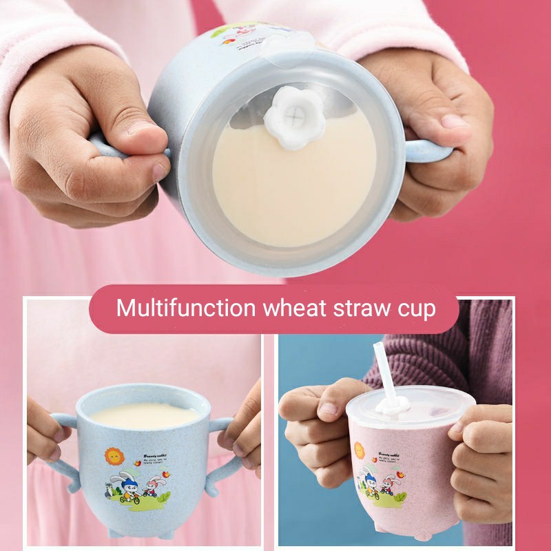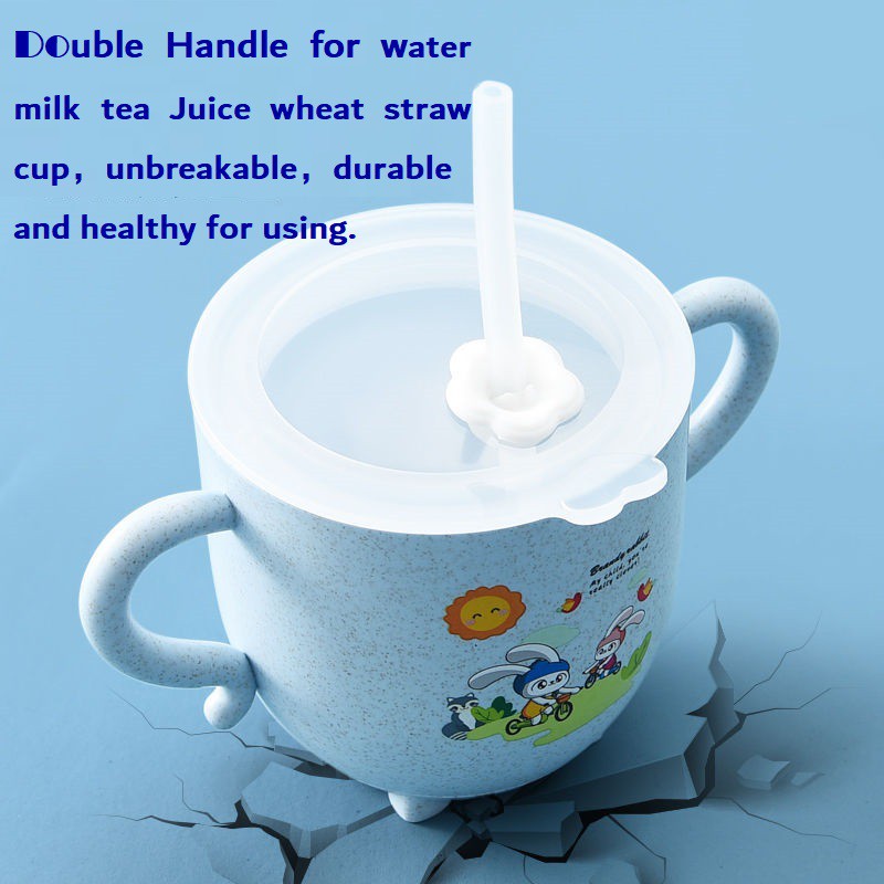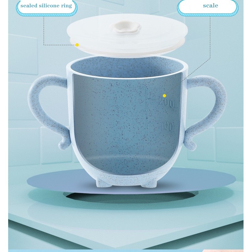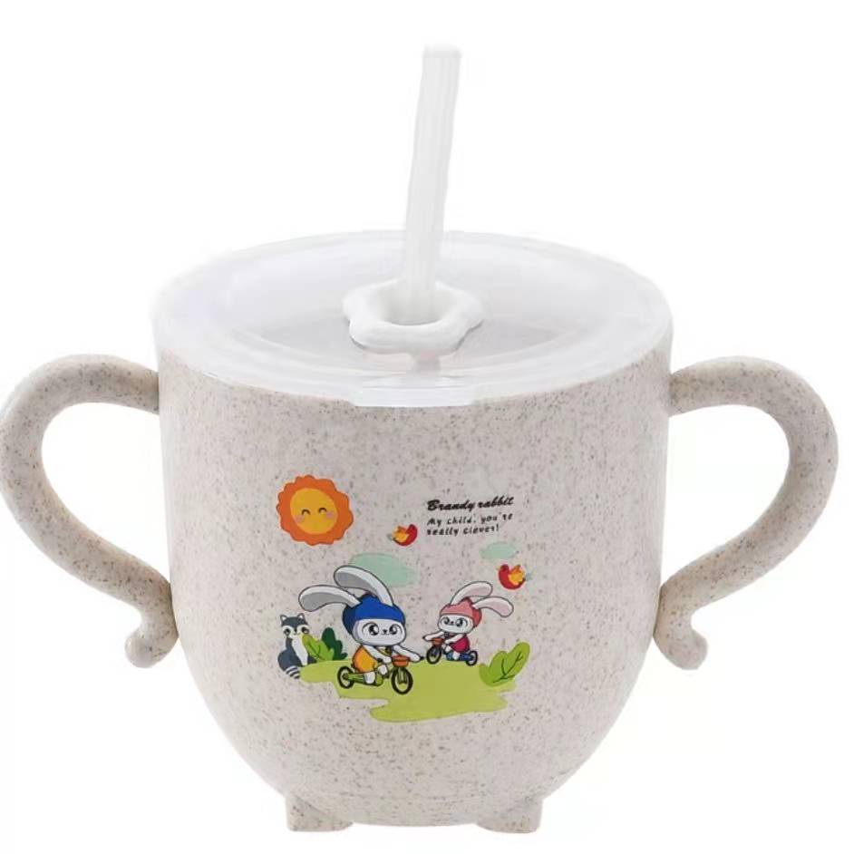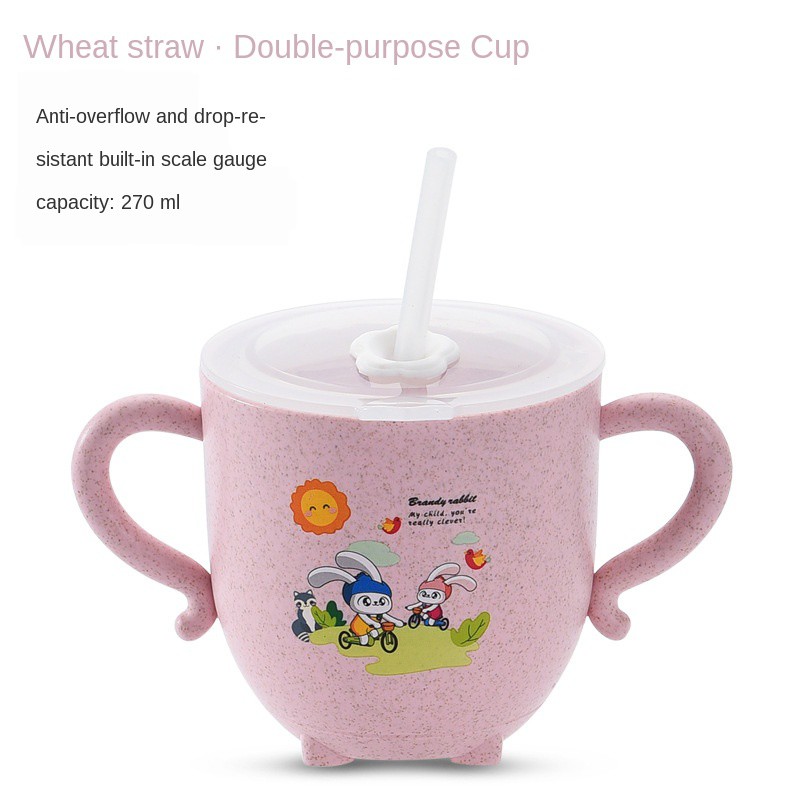 270ml Kid Wheat Straw Cup for Baby Water Cup With Scale Cute Baby Cup With Lid Child Straw Cup