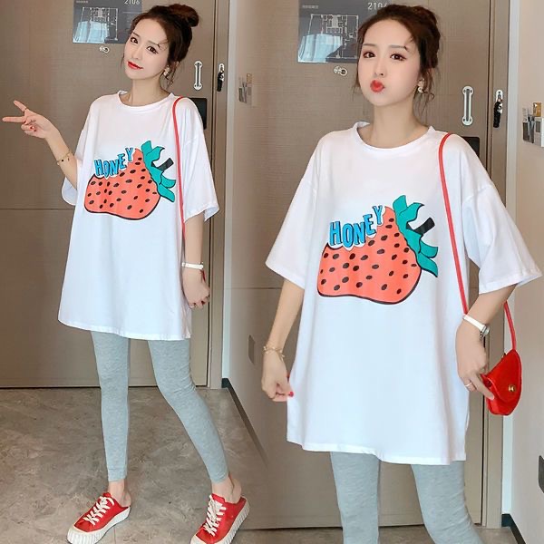 Maternity Short-Sleeved T-shirt% Cotton Summer plus Size Women's Loose 100.00kg Fat Sister Mid-Length Top