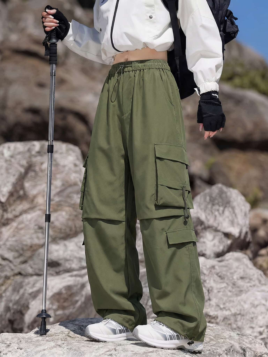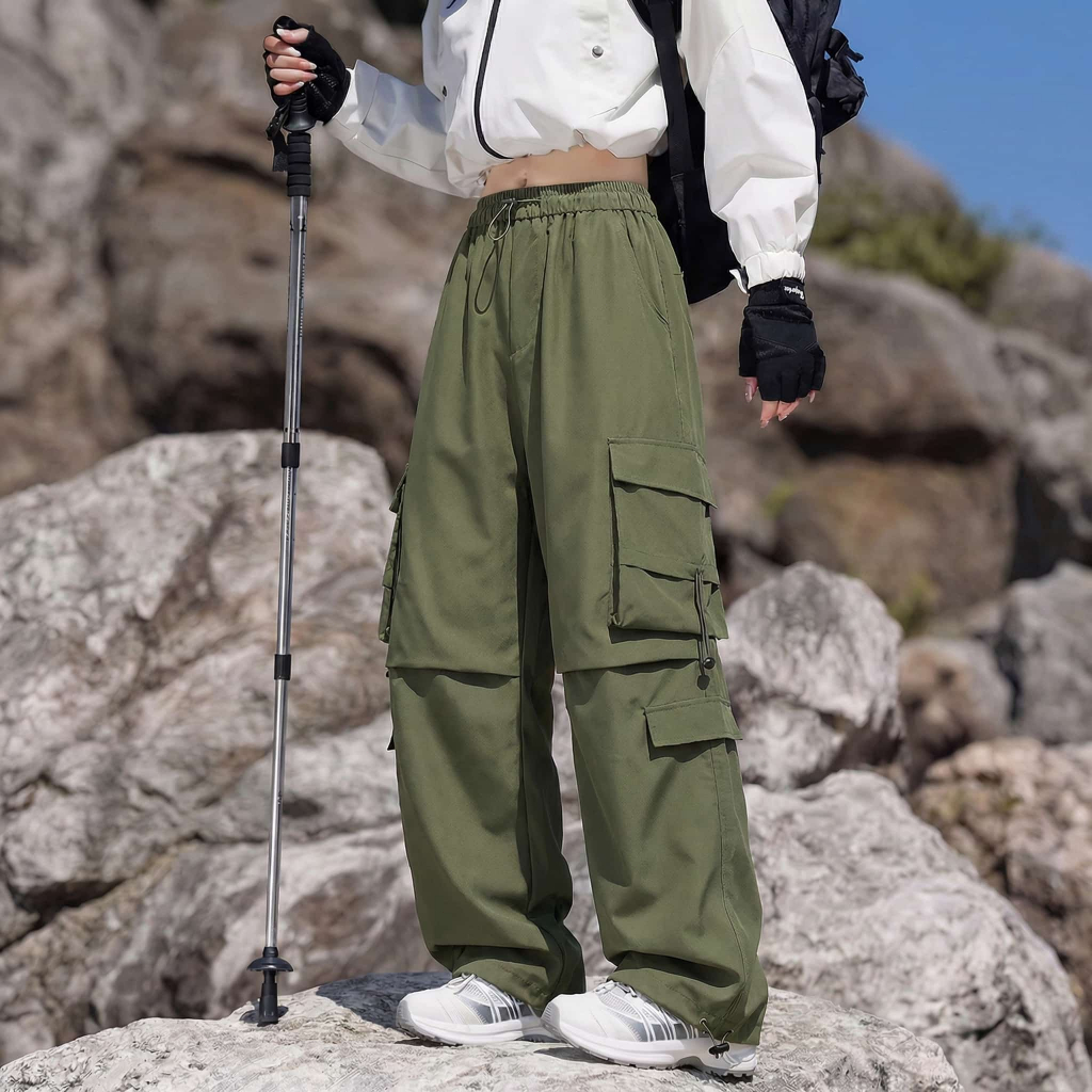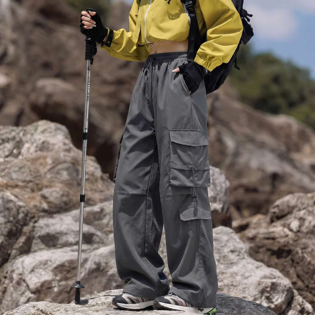 Korean Fashion Cargo Pants For Women Hiking Trousers Multi Pocket Thin Breathable Outdoor#8014#