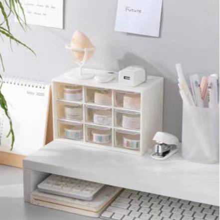 Simple creative 9 compartment storage box transparent drawer type desktop storage organizing box