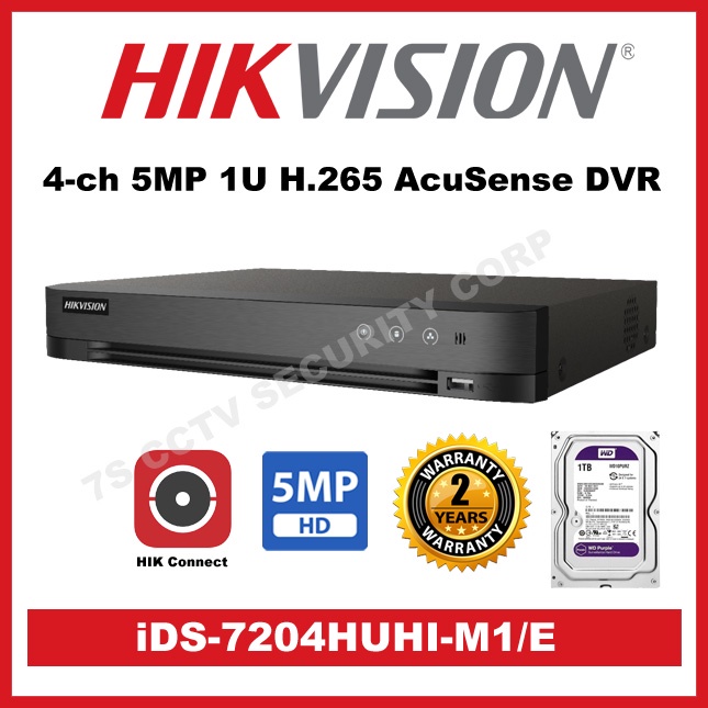HIKVISION iDS-7204HUHI-M1/E AcuSense H.265+ 4MP/5MP/8MP Lite 4CH 1SATA 260 1U Turbo DVR w/false