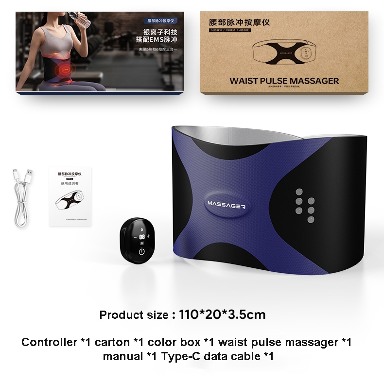 EMS Waist Massager Silver ion Pulse Slimming Belt with Heat Lumbar Massager Micro-current Help Exercise Hot Compress Body Sculpting Belt