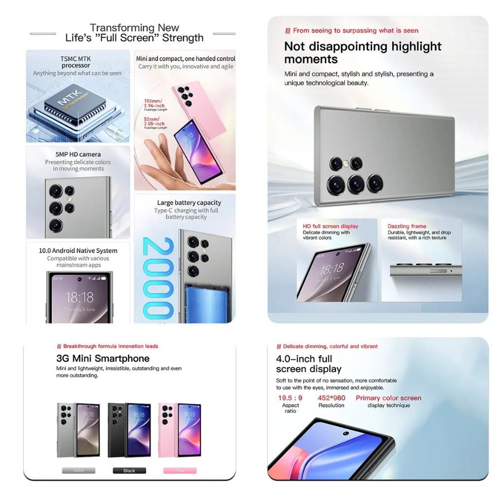 2025 New ONEMYTH S26 Pro Android 12.0 Mini 4G Smartphone 4.0 lnch Full Screen High Definition 2000Mah 2G+16GB Play Store Dual SIM Standby Cute Cellular Phone