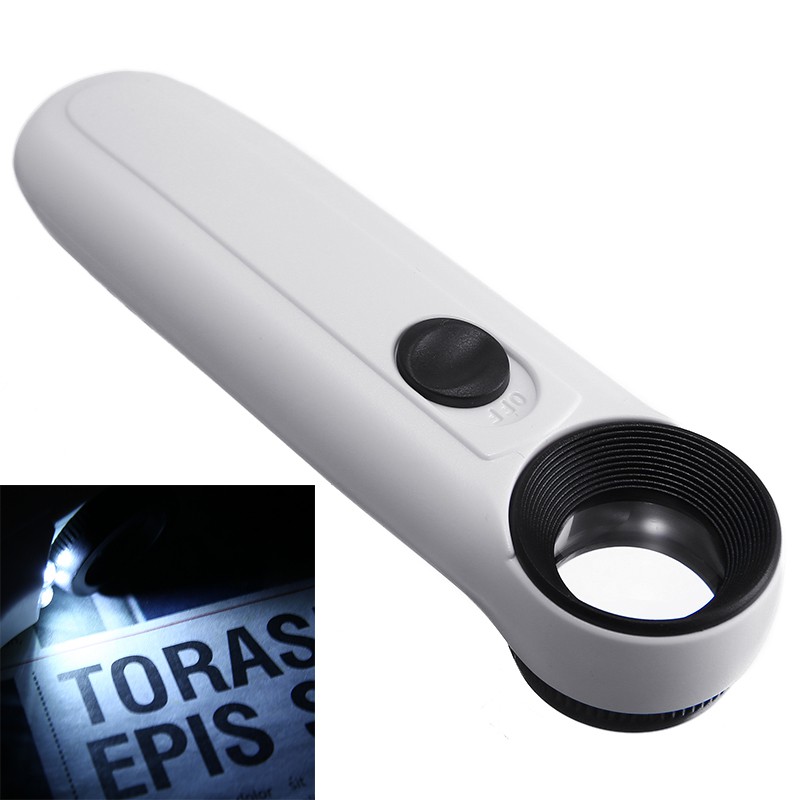 40X Magnifying Glass with 2 LED Light for Inspect Maps Stamps Jewelry