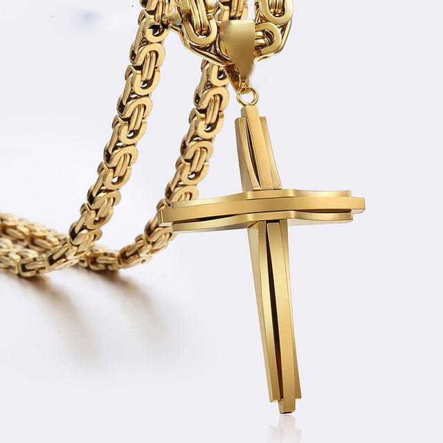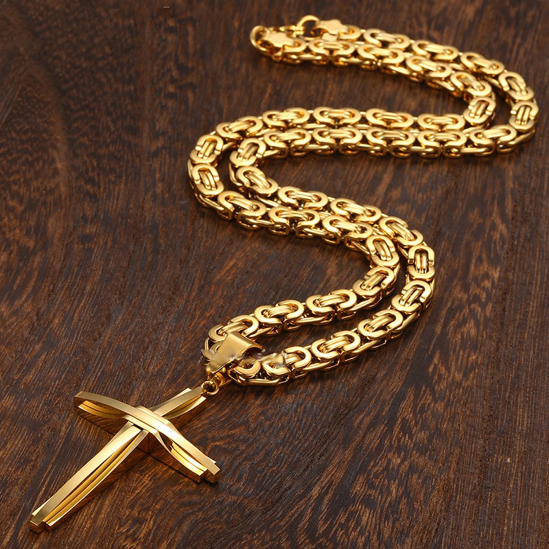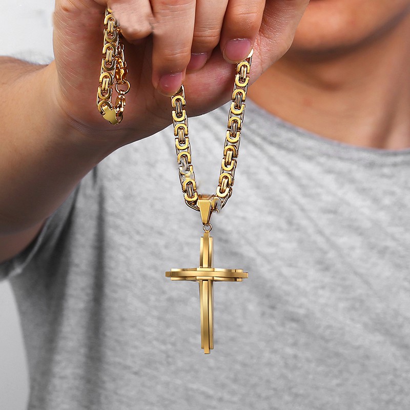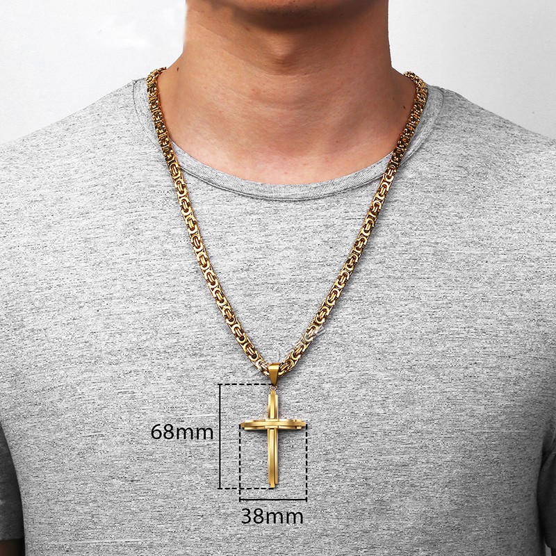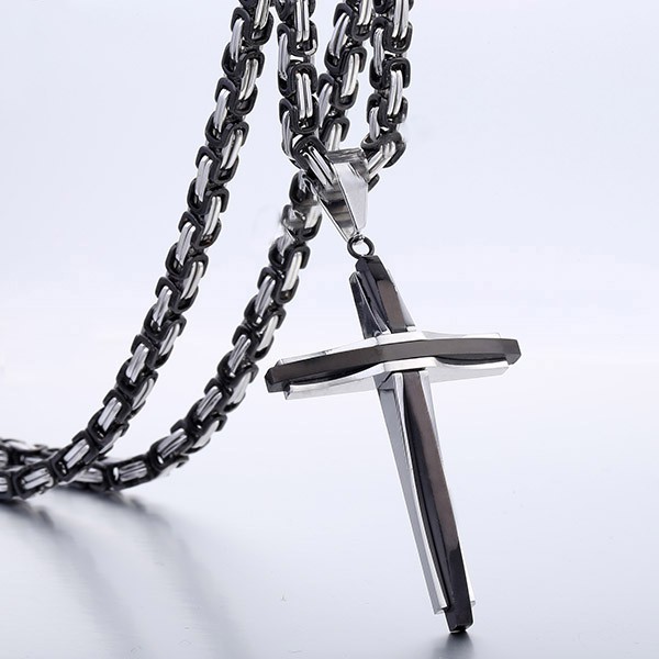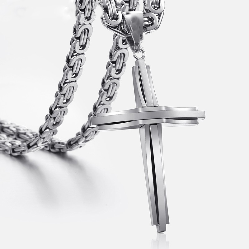 Stainless Steel Cross Necklaces Crucifix Pendant & Necklace for men Vintage Stainless Steel Men 6mm Byzantine Chain