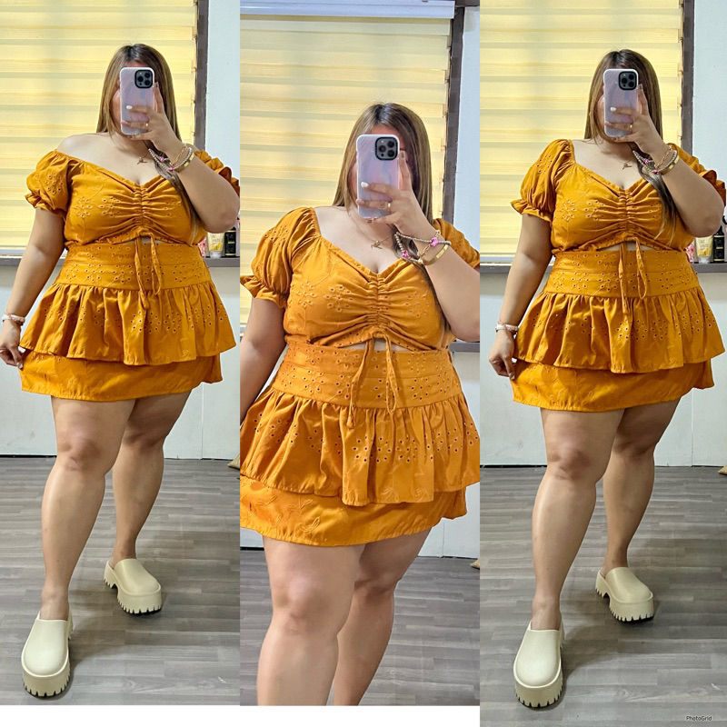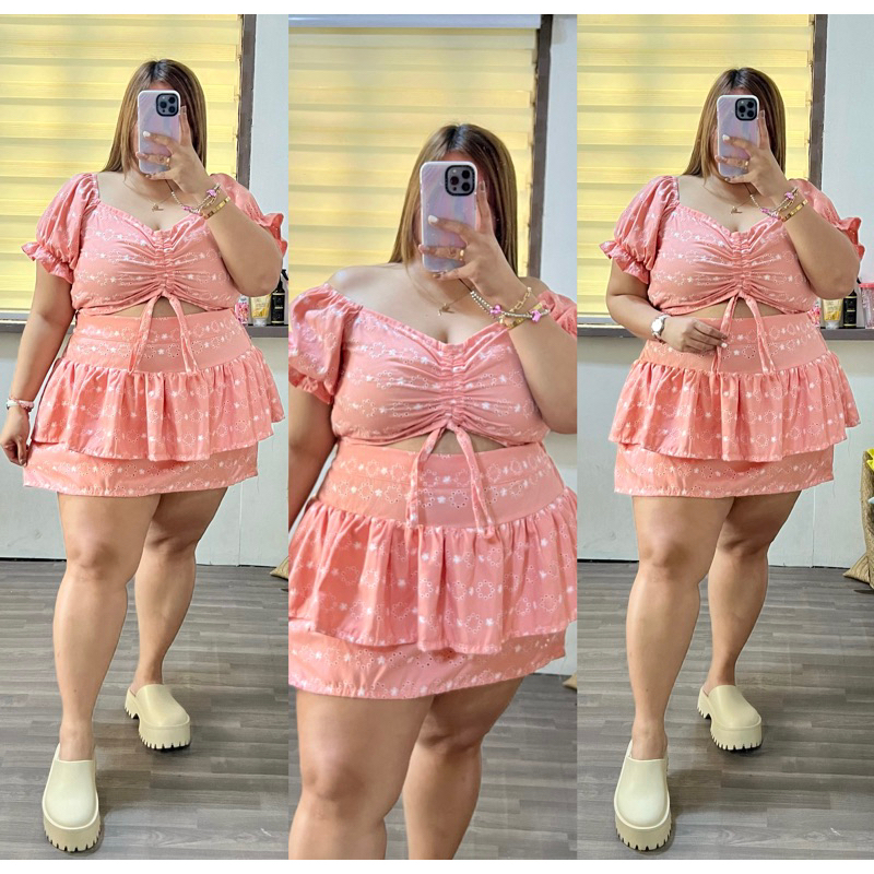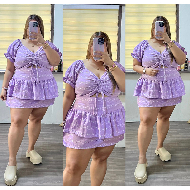 VIY PLUS SIZE EYELET COORDINATES | PLUS SIZE EYELET TOP & SKIRT TERNO