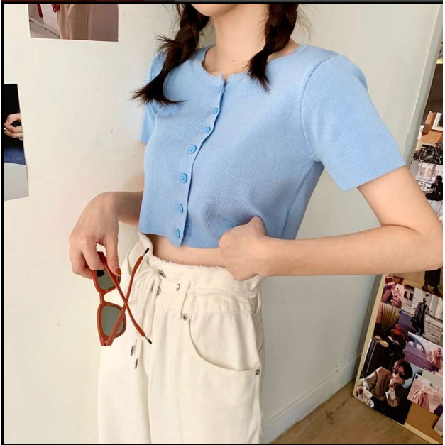 Summer Korean loose short knit short-sleeved T-shirt female crop top