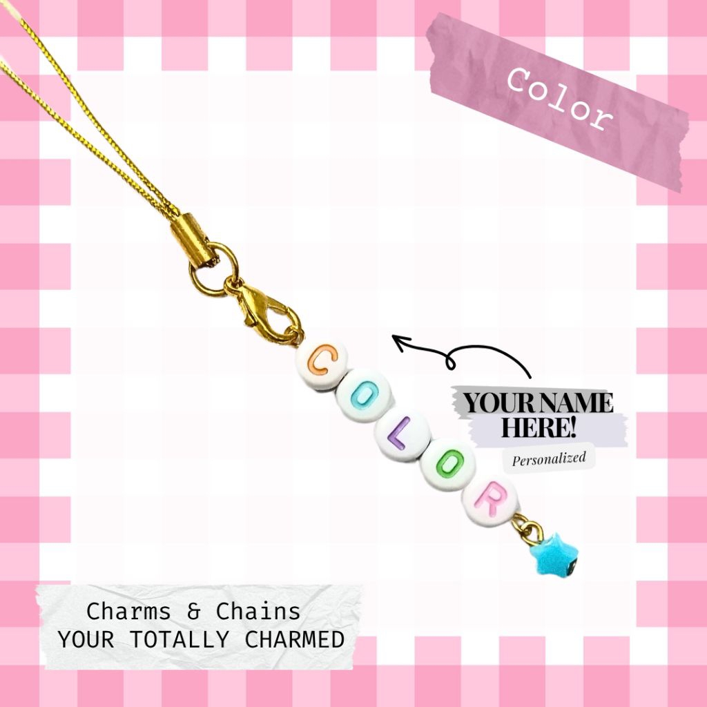PERSONALIZED PHONE CHARM, ACRYLIC, LETTER BEADS GIFT SOUVENIRS GIVE AWAYS PHONE STRAP AND CHAINS