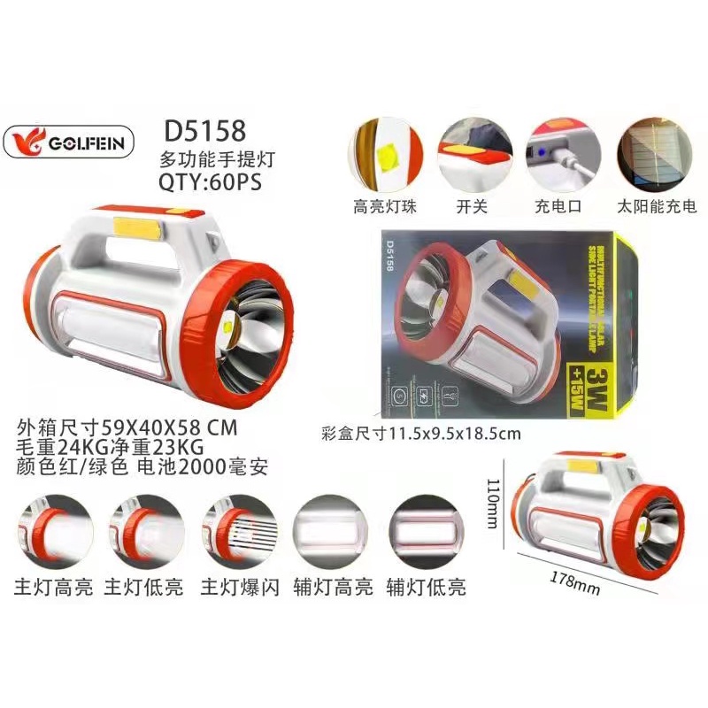 Multifunctional light USB charging solar flashlight with lateral lamp emergency hand lamp