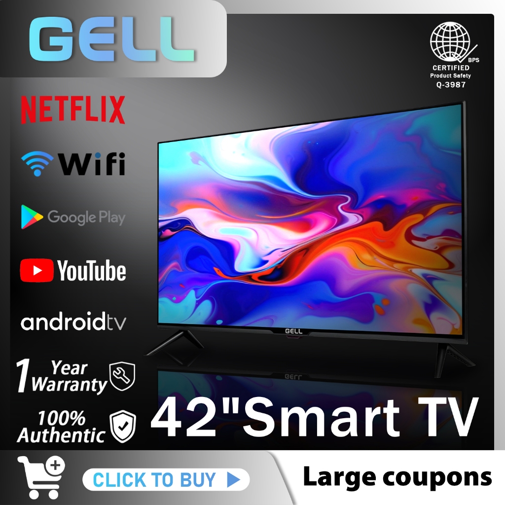 GELL 42 Inch Smart TV 50 Inches Android Smart LED TV FHD Multiport Television With Bracket