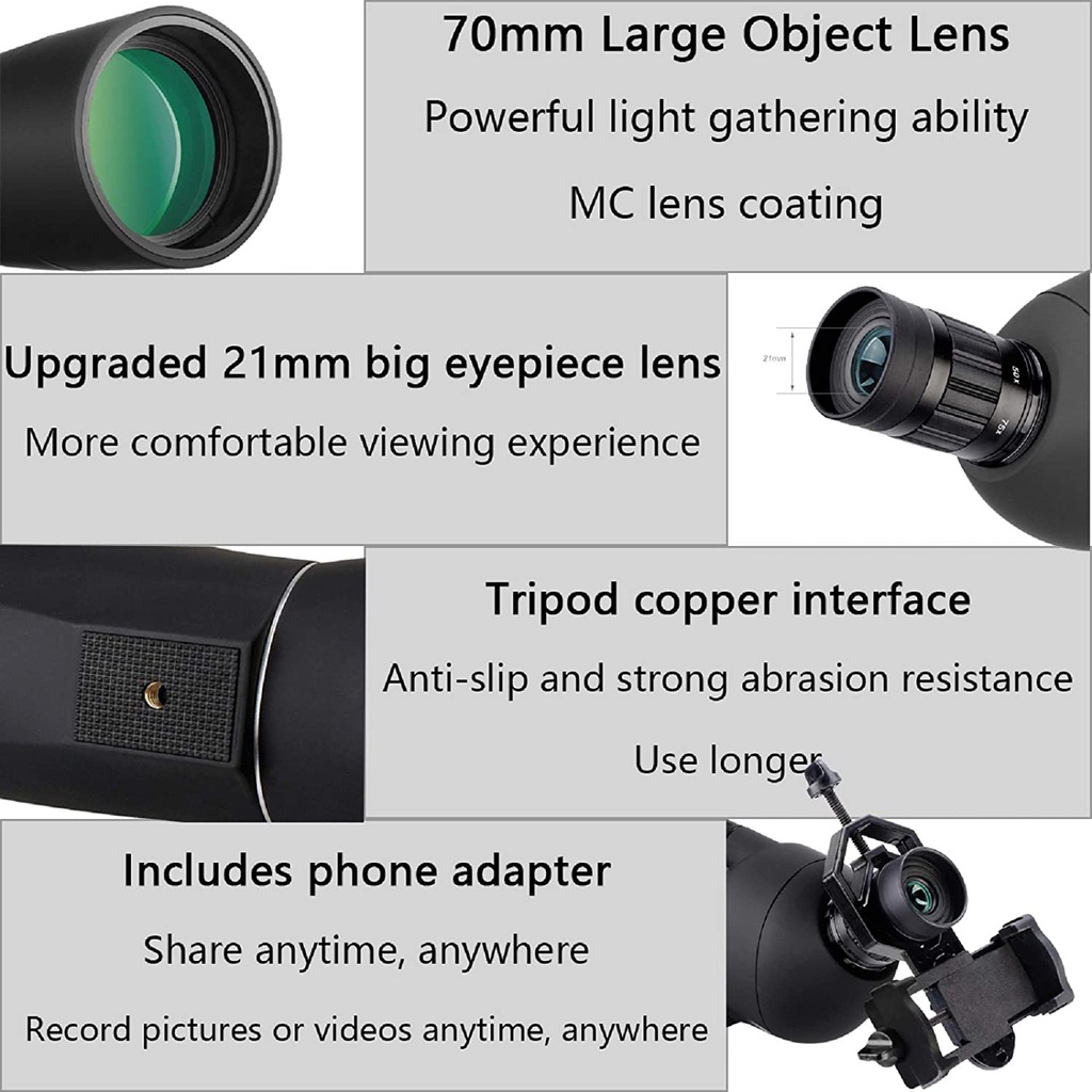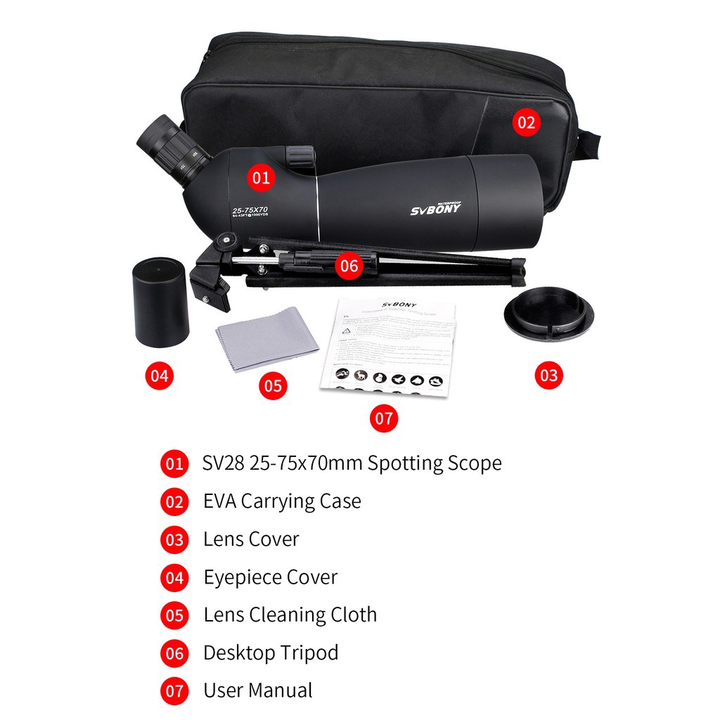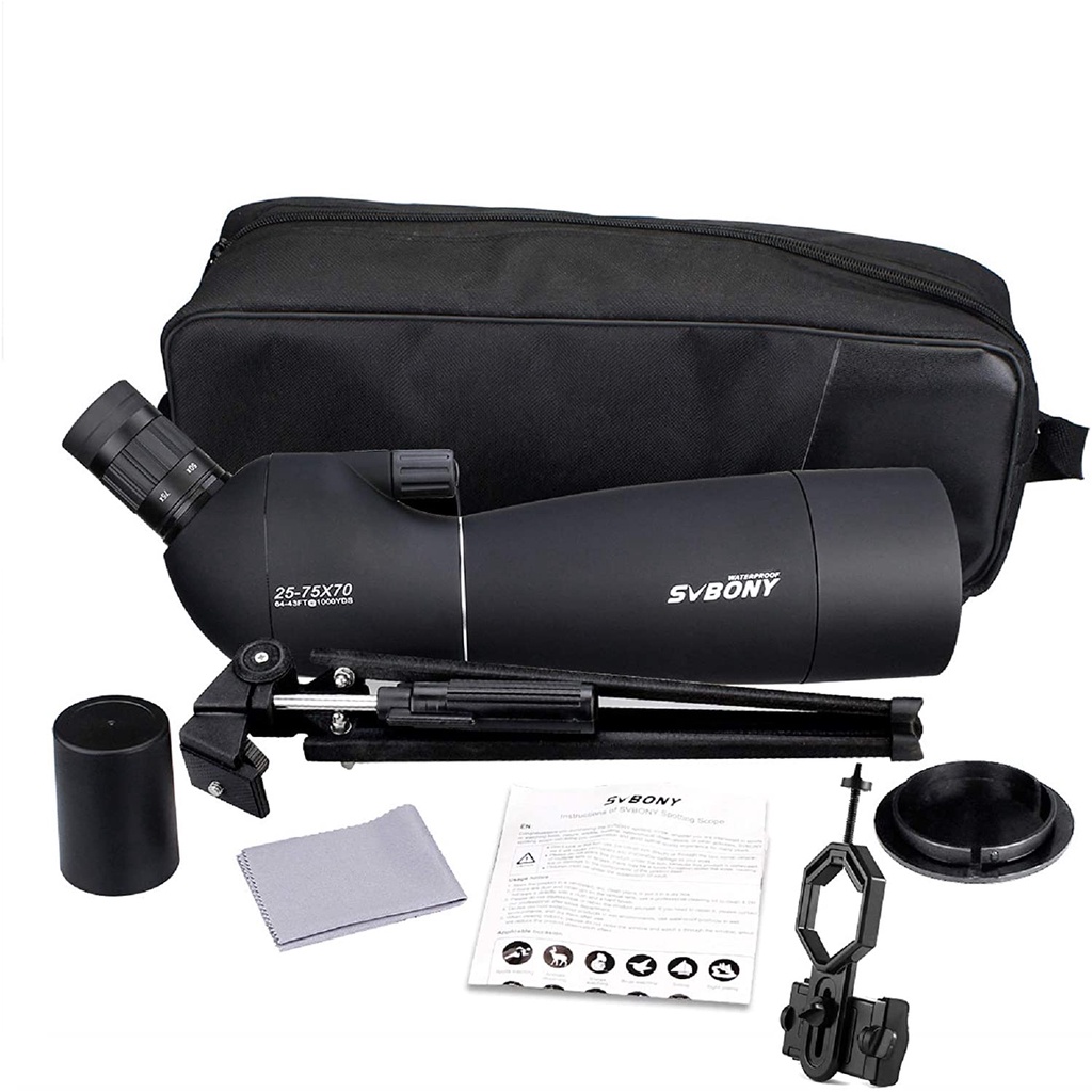 SVBONY SV28 Spotting Scope 25-75x70 Zoom Telescope Big Eyepiece for Bird Watching with Tripod and Phone Holder