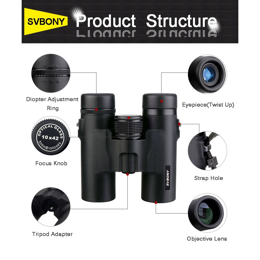 【Local Stock】Svbony SV21 Binoculars 10x42 MC Optical Coating BK7 Prism High Power Telescope Powerful Binoculars for Camping
