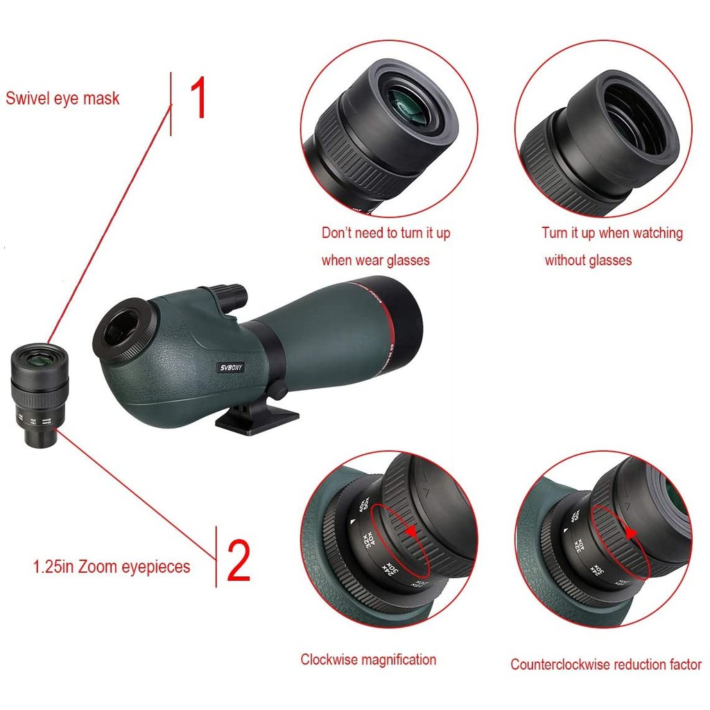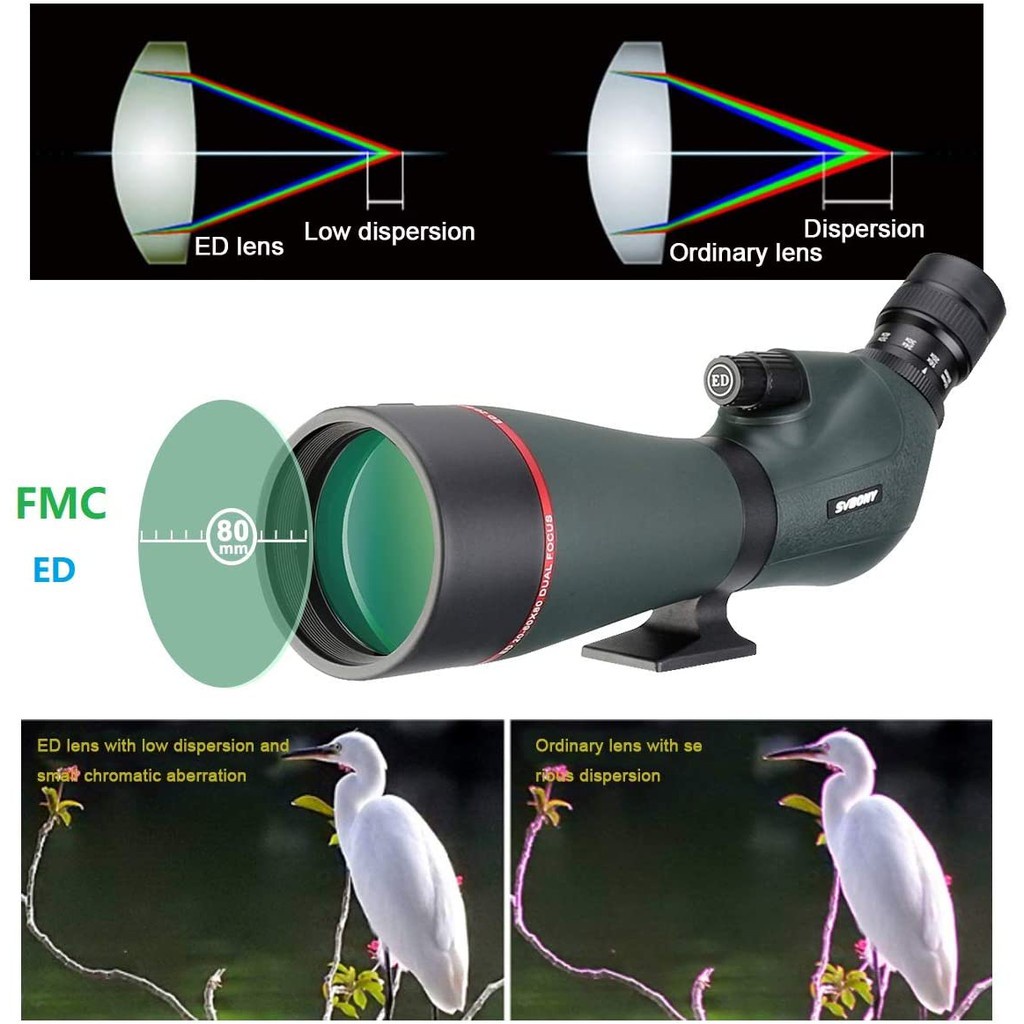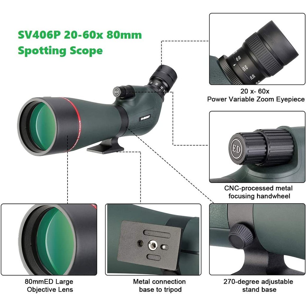 Svbony SV406P 80ED Spotting Scope Digiscoping 20-60X80 Zoom Telescope Extra-Low Dispersion Dual Focus For Bird Watching Stargazing