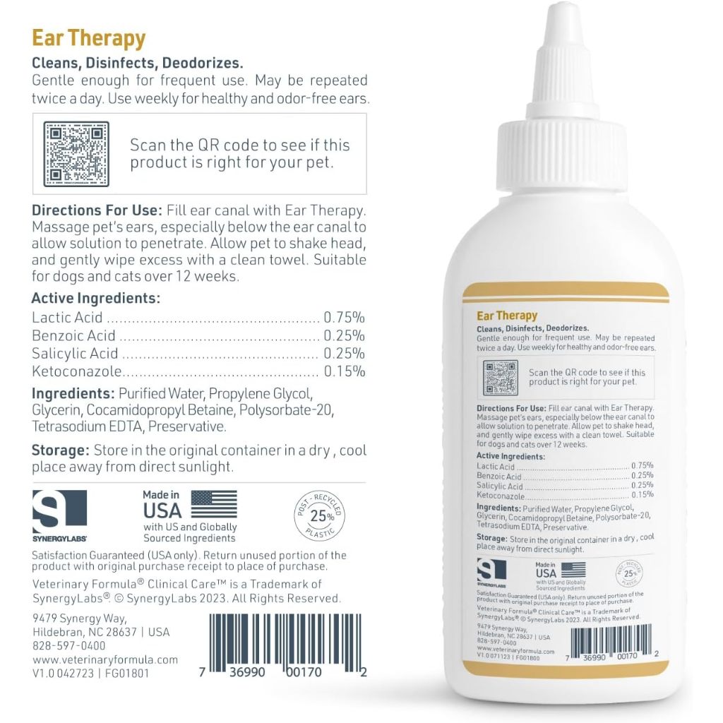 Veterinary Formula Ear Therapy for Dogs and Cats - Painless & Alcohol Free (4 oz)