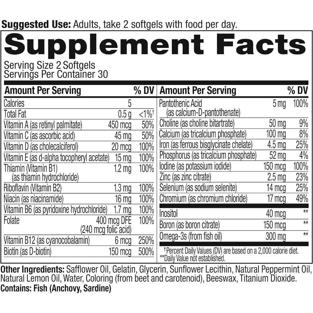 OLLY Women's Multi + Omega-3 Softgels (60 Count) - Sugar Free