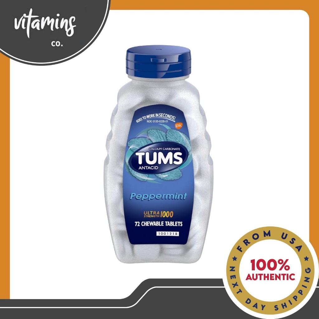 TUMS Chewable Antacid Tablets, Peppermint (72 count) - Gluten Free