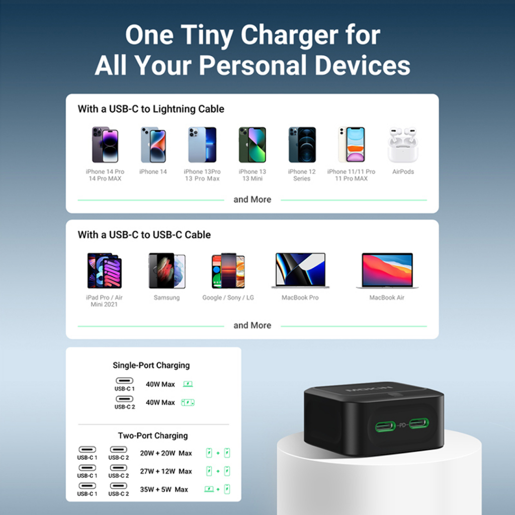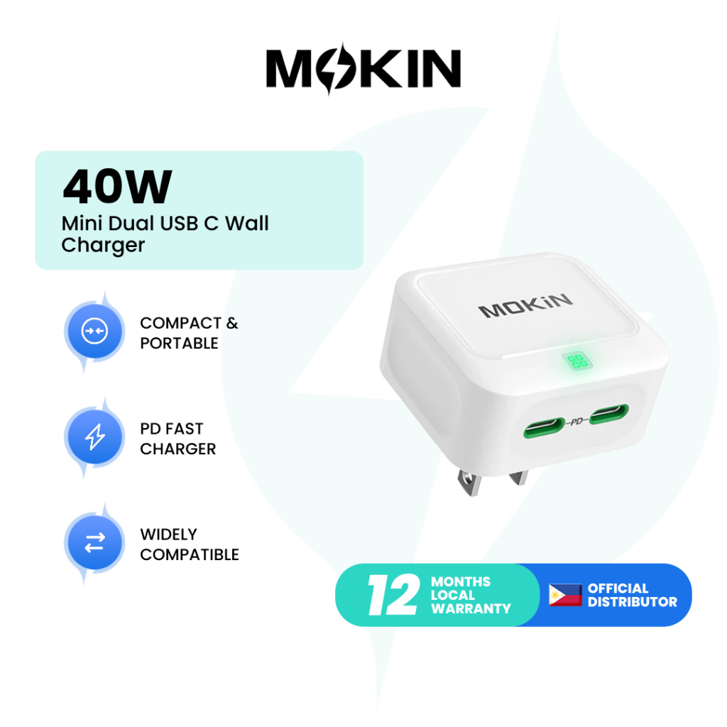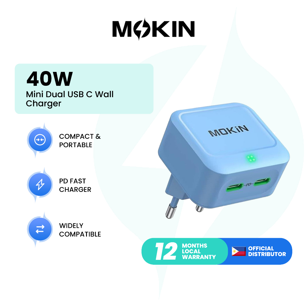 MOKiN 40W Fast GaN Charger Type-C | Fast Charging Phone Charger Blue/ White - PH