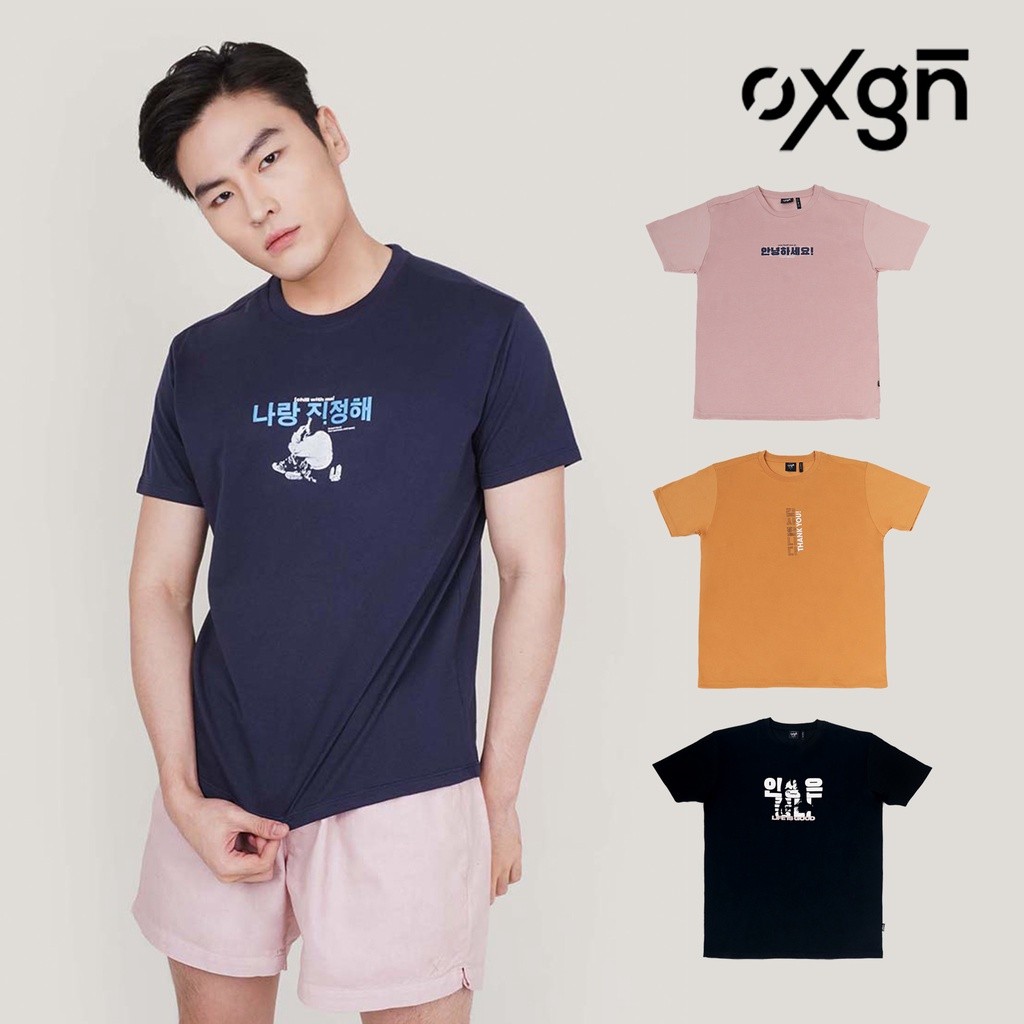 OXGN Special Price: Korean Inspired Slim Fit Graphic T-Shirt For Men (Mustard/Blush/Black/Navy Blue)