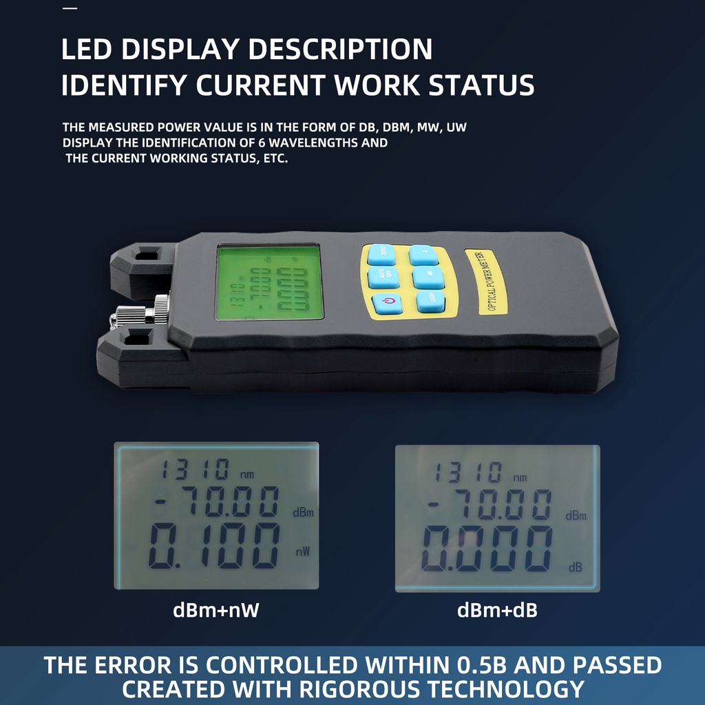 Fiber Optic Optical Power Meter Cable Tester Networks With FC/SC connectors -70~+10dBm