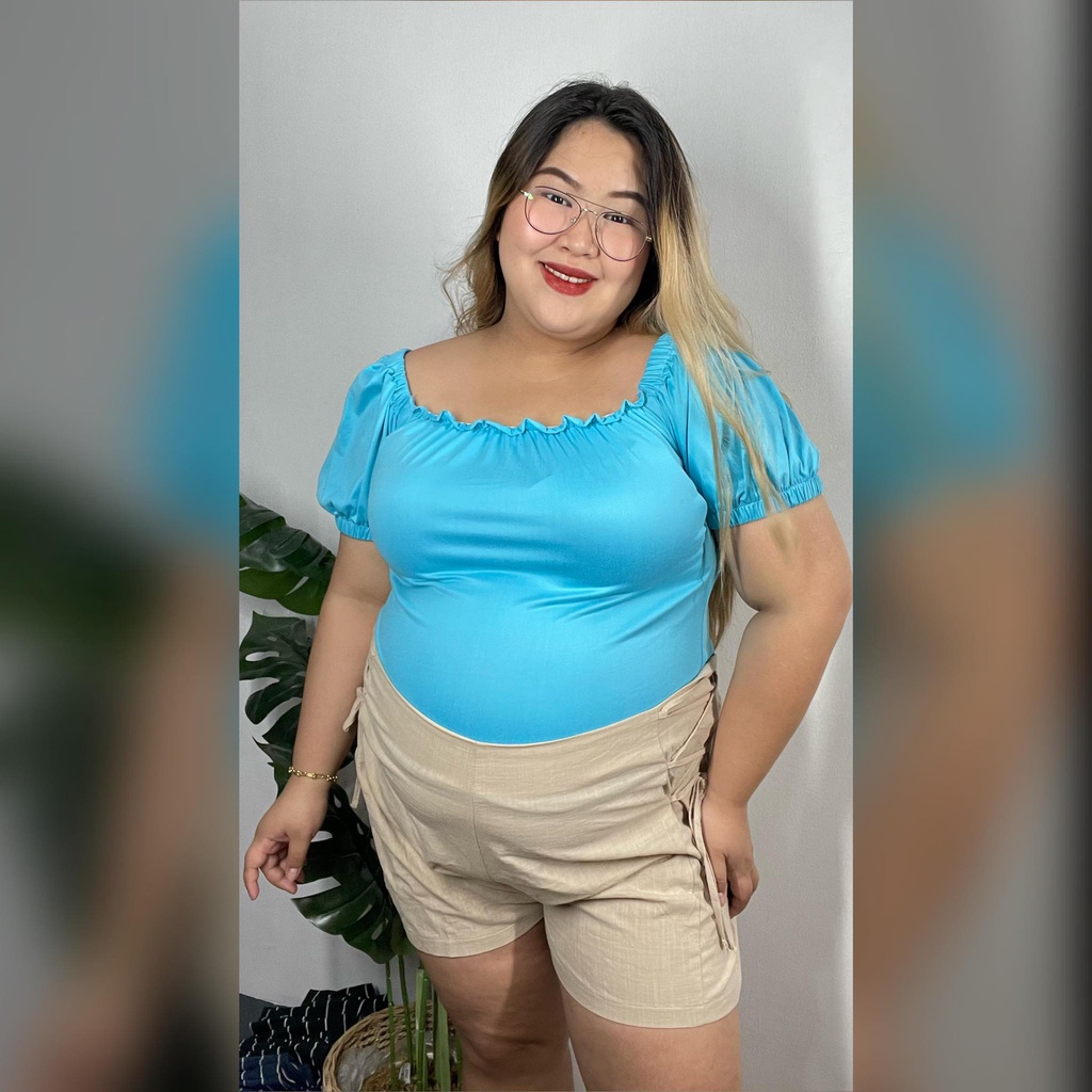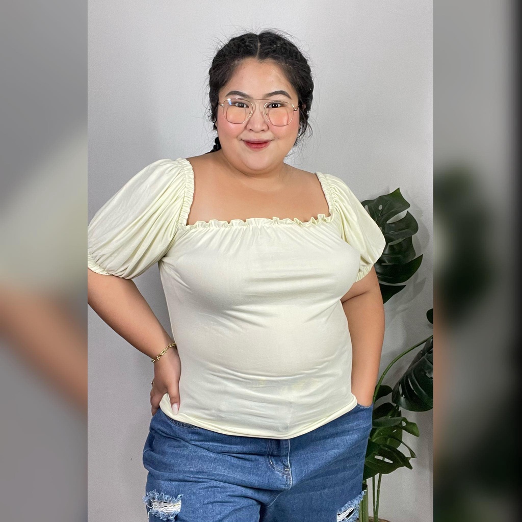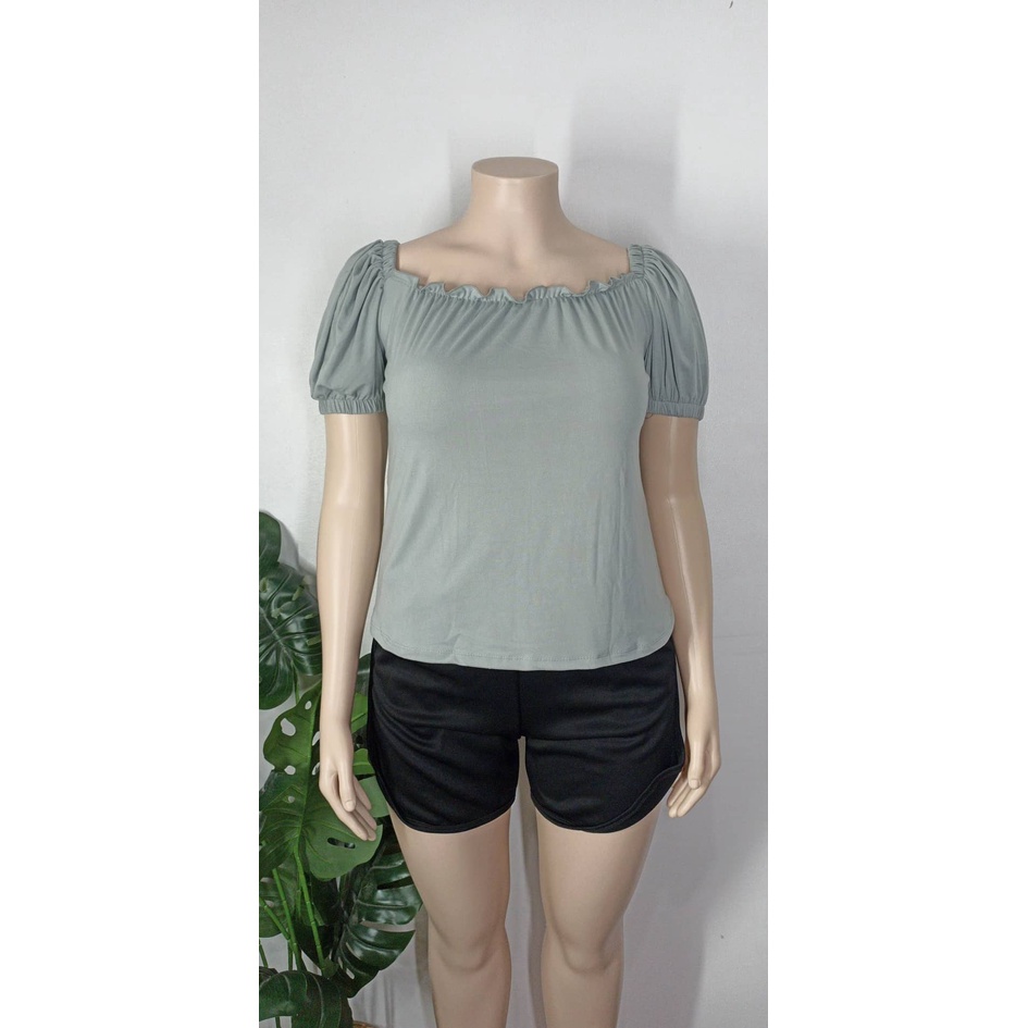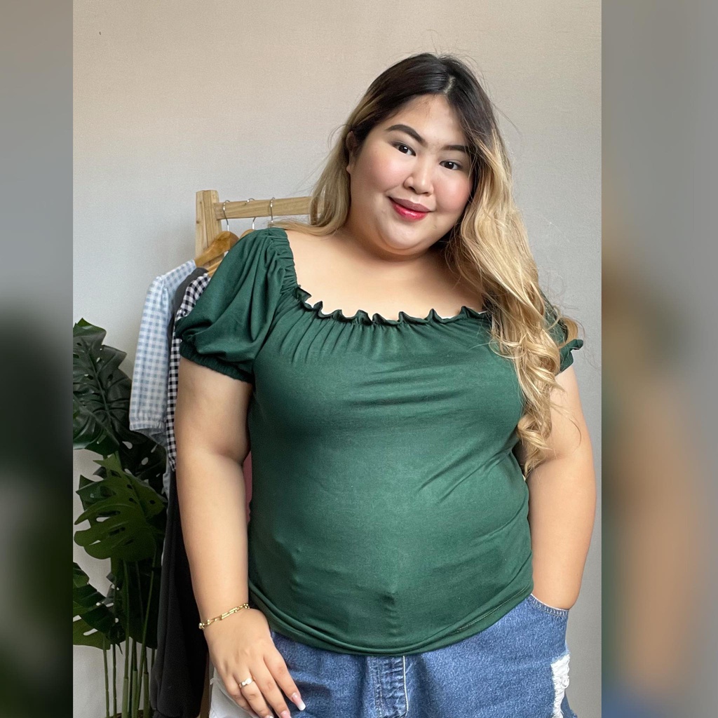 Claire plus size lettuce 2 way puff sleeve off shoulder blouse fits xl-3xl