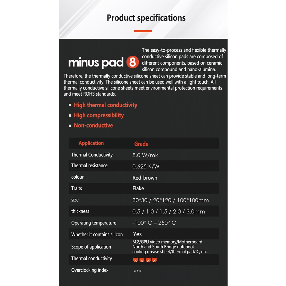 Thermal Grizzly Minus Pad 8 Thermal Pad 8.0W/mk Multi-Size CPU Graphics Card Heatsink Motherboard Heat Dissipation Silicone Pad