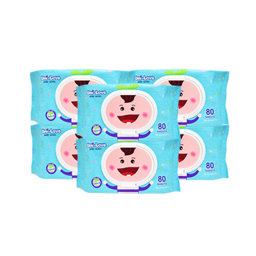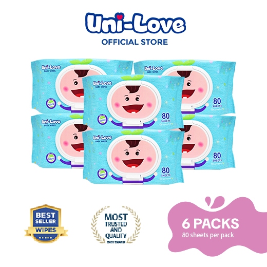 UniLove Unscented Baby Wipes 80's Pack of 6 (for promotion) - Hypoallergenic | 99% Water