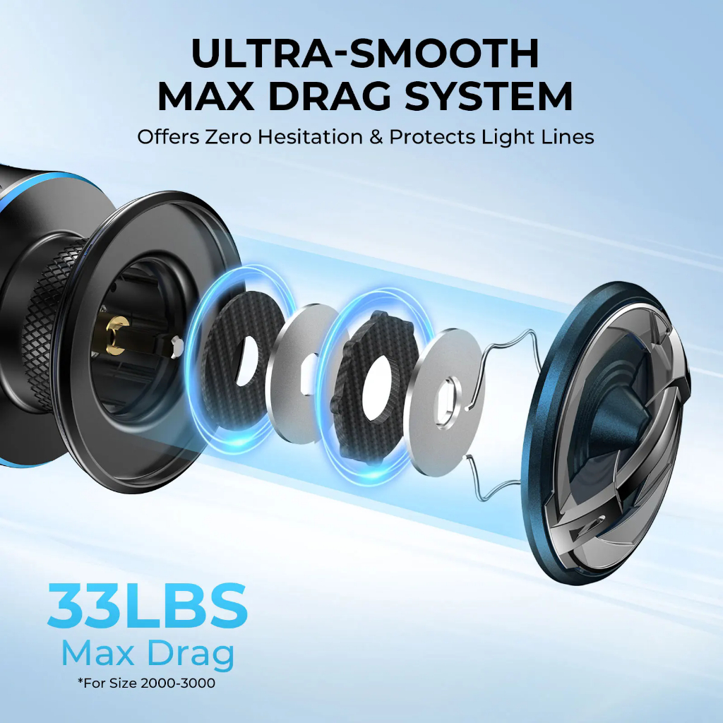 KastKing MegaJaws Spinning Fishing Reel Up to 39.5LBS Max Drag Lightweight Powerful NyliPlex 6.2:1/5.2:1 Gear Ratio 10+1 BB