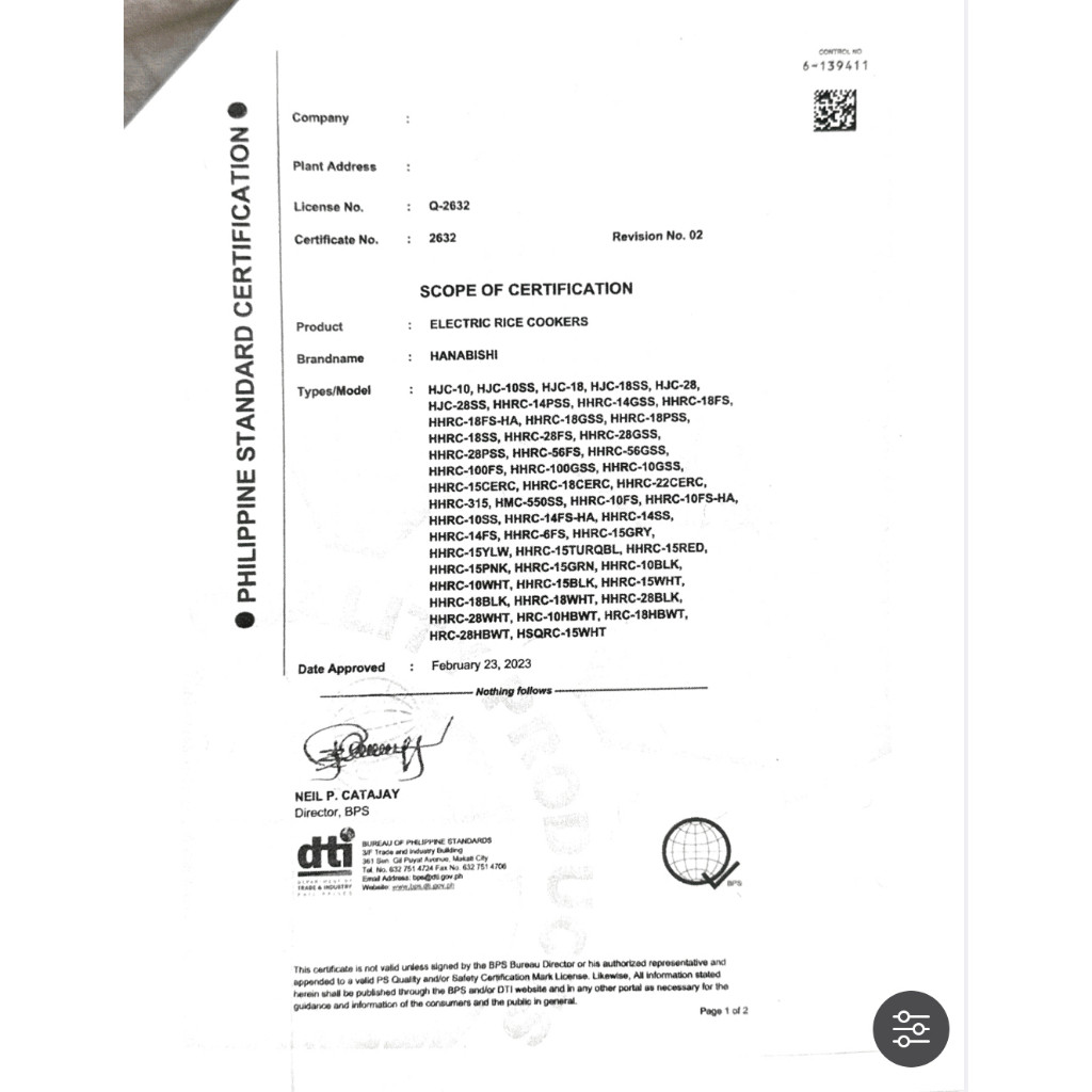 Hanabishi Rice Cooker 3 Cups Aluminum Pot W/ Steamer Original w/ 1 Year Warranty HHRC 6FS