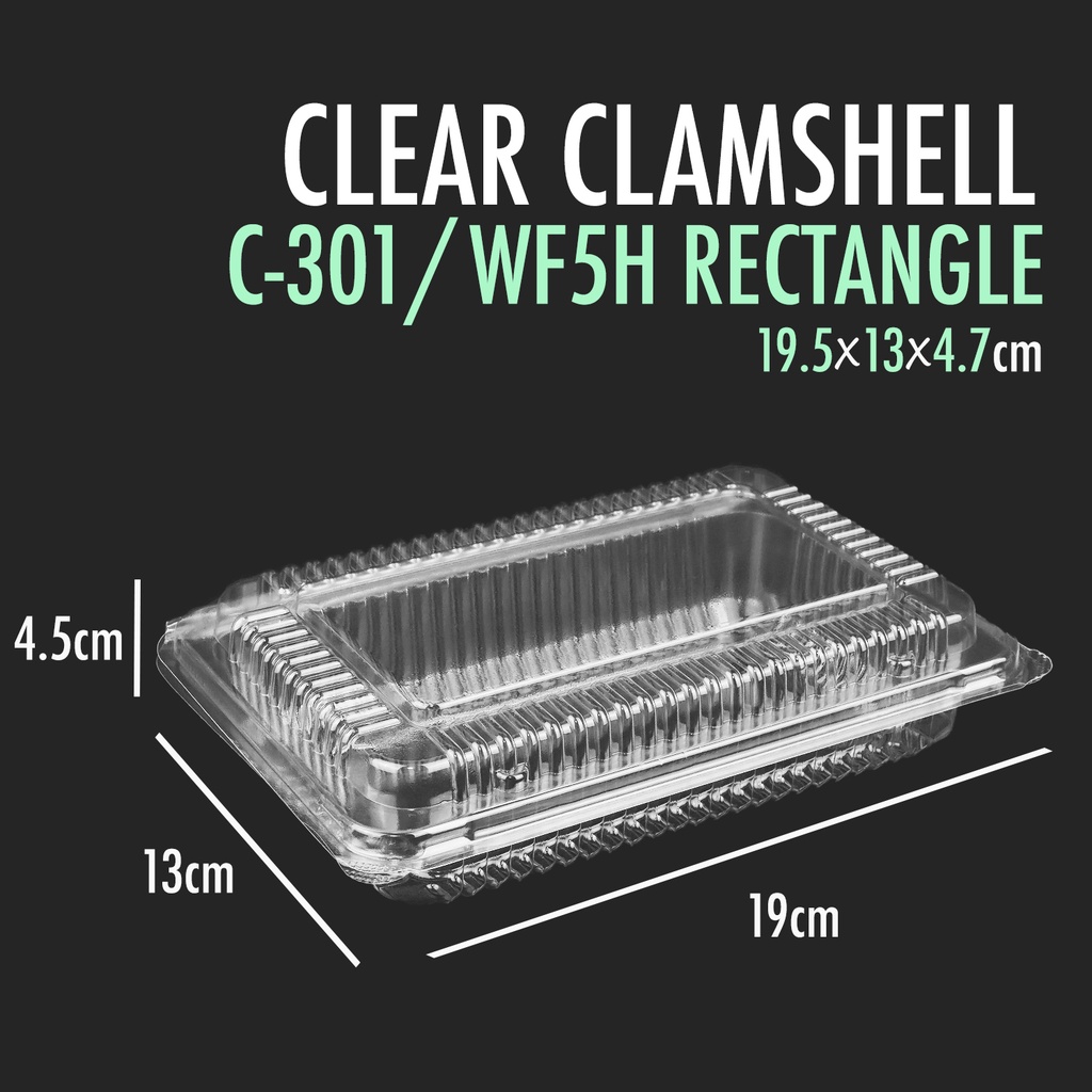 Disposable Clear Clamshell Food Container Rectangle for Cakes, Pastry - 10 pcs - C301 C-301 WF168